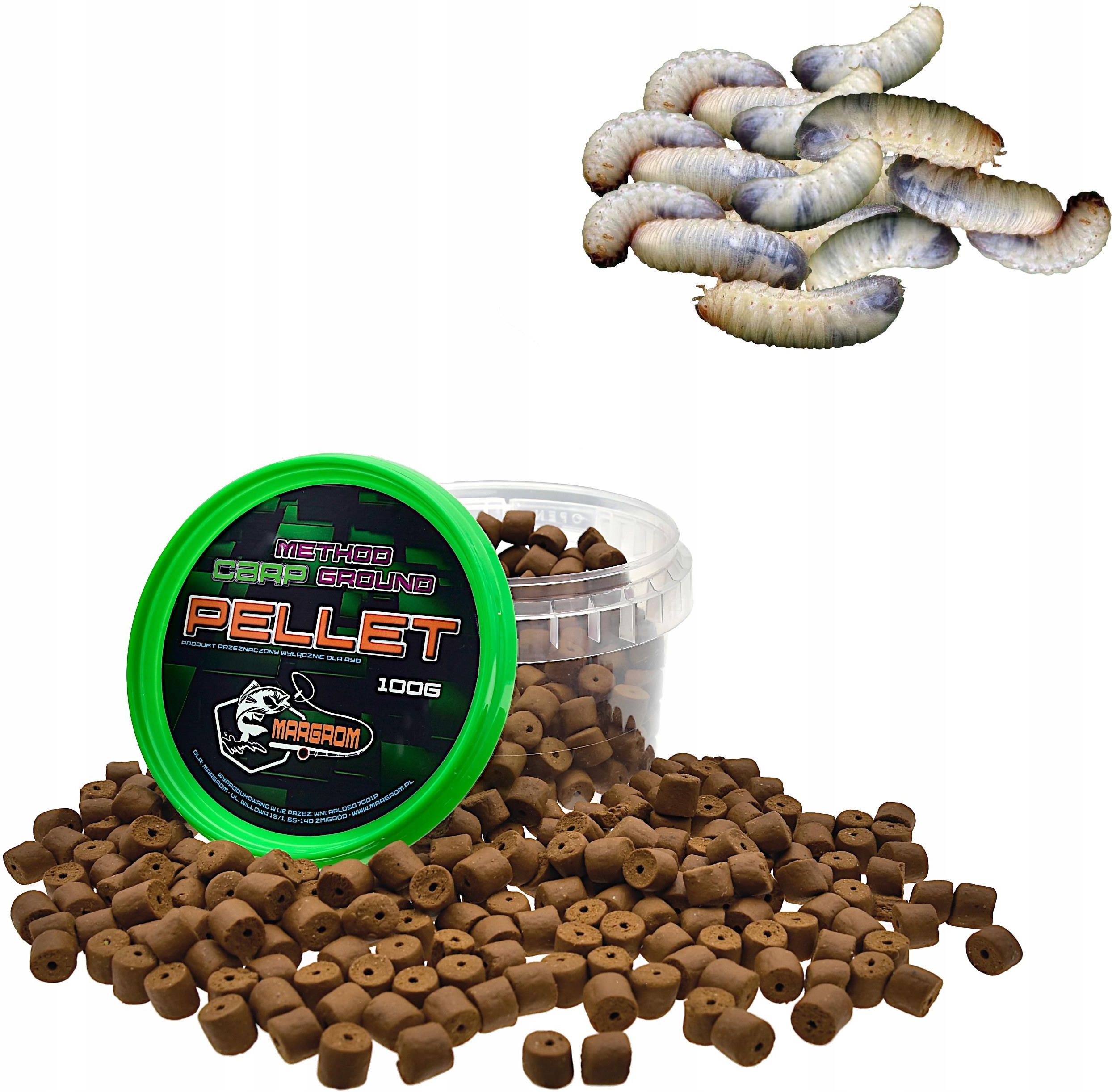 PELLET HACZYKOWY CARP Method Ground - MARGROM 8mm/100g Biały Robak Najwyższa pora na PELLET,który sprosta na prawdę wysoce wygórowanym wymaganiom wędkarzy, którego jakość, aromat, świetna praca w wodzie oraz wysoka skuteczność nie ma sobie równych - przekonajcie się sami!!! Produkowany metodą ekstruzji na najwyższej jakości mączkach rybnych, drobiowych, zbożach, ziarnach roślin oleistych, olejach: roślinnych oraz rybnych, hemoglobinie, wysokobiałkowych produktach roślinnych sprawia, że pellet Carp Method Ground charakteryzuje się bardzo wysoką wartością odżywczą i bardzo wysoką strawnością - a w połączeniu z najwyższej jakości aromatami i przyprawami sprawia, że żadna ryba nie pozostaje bez odzewu. Specyfikacje: Pellet haczykowy Średnica: 8 mm Aromat: Biały Robak dedykowany na lina, karpia ,leszcza, jazia, krąpia Waga netto: 100 g Produkt przeznaczony wyłącznie dla ryb. Pellet to atrakcyjna przynęta do łowienia karpi, leszczy, kleni, karasi i wszelkich innych ryb karpiowatych. Idealna zarówno na wody stojące, jak i płynące. Przynęta jest gotowa do nałożenia bezpośrednio na haczyk lub włos. Produkt polski - Made in Poland