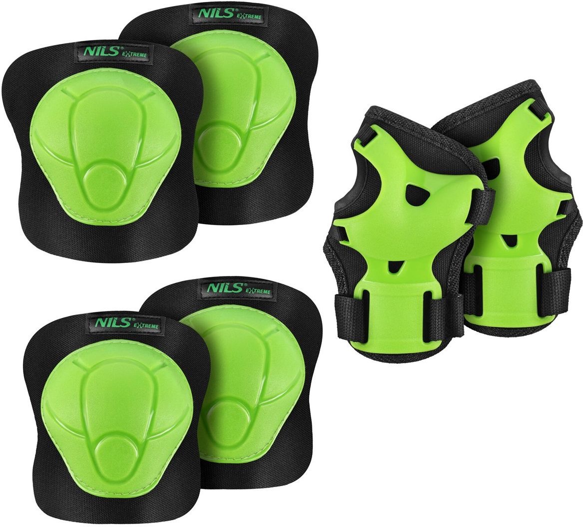 H210 Nils Extreme – kompleksowa ochrona podczas jazdy H210 Nils Extreme to zestaw ochraniaczy na nadgarstki, łokcie i kolana, który zapewnia pełne bezpieczeństwo podczas jazdy na rolkach, deskorolce, hulajnodze czy rowerze. Dzięki solidnej konstrukcji i anatomicznemu dopasowaniu, skutecznie chronią przed urazami, zapewniając jednocześnie wygodę i swobodę ruchów. Najważniejsze cechy Kompletny zestaw – ochrona kolan, łokci i nadgarstków Twarda, lekka skorupa – odporna na uderzenia i przetarcia Paski mocujące na rzepy – zapewniają stabilność i pewne dopasowanie Elastyczne opaski – dodatkowe zabezpieczenie bez ograniczania ruchów Dostępne w 3 wariantach kolorystycznych – czarnym, czarno-miętowym i czarno-różowym Dostępne w 4 rozmiarach – XS, S, M, L FAQ – Najczęściej zadawane pytania Jak dobrać odpowiedni rozmiar? Ochraniacze są dostępne w czterech rozmiarach – najlepiej zmierzyć obwód kolan, łokci i nadgarstków i porównać z tabelą producenta. Czy ochraniacze nadają się dla dorosłych? Tak, dostępne rozmiary obejmują zarówno dzieci, młodzież, jak i dorosłych o drobniejszej budowie. Czy ochraniacze są wygodne? Tak, elastyczne opaski i ergonomiczny kształt sprawiają, że ochraniacze nie krępują ruchów i zapewniają komfort nawet podczas długiej jazdy. H210 Nils Extreme – bezpieczeństwo i wygoda w każdej aktywności!