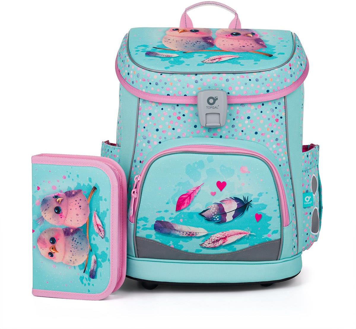 Zestaw szkolny składający się z plecaka i piórnika. Komplet szkolny składa się z produktów: DIDI 25001 - Lekki tornister w ptaszki, PENN 25001 - Piórnik szkolny z dwoma skrzydłami