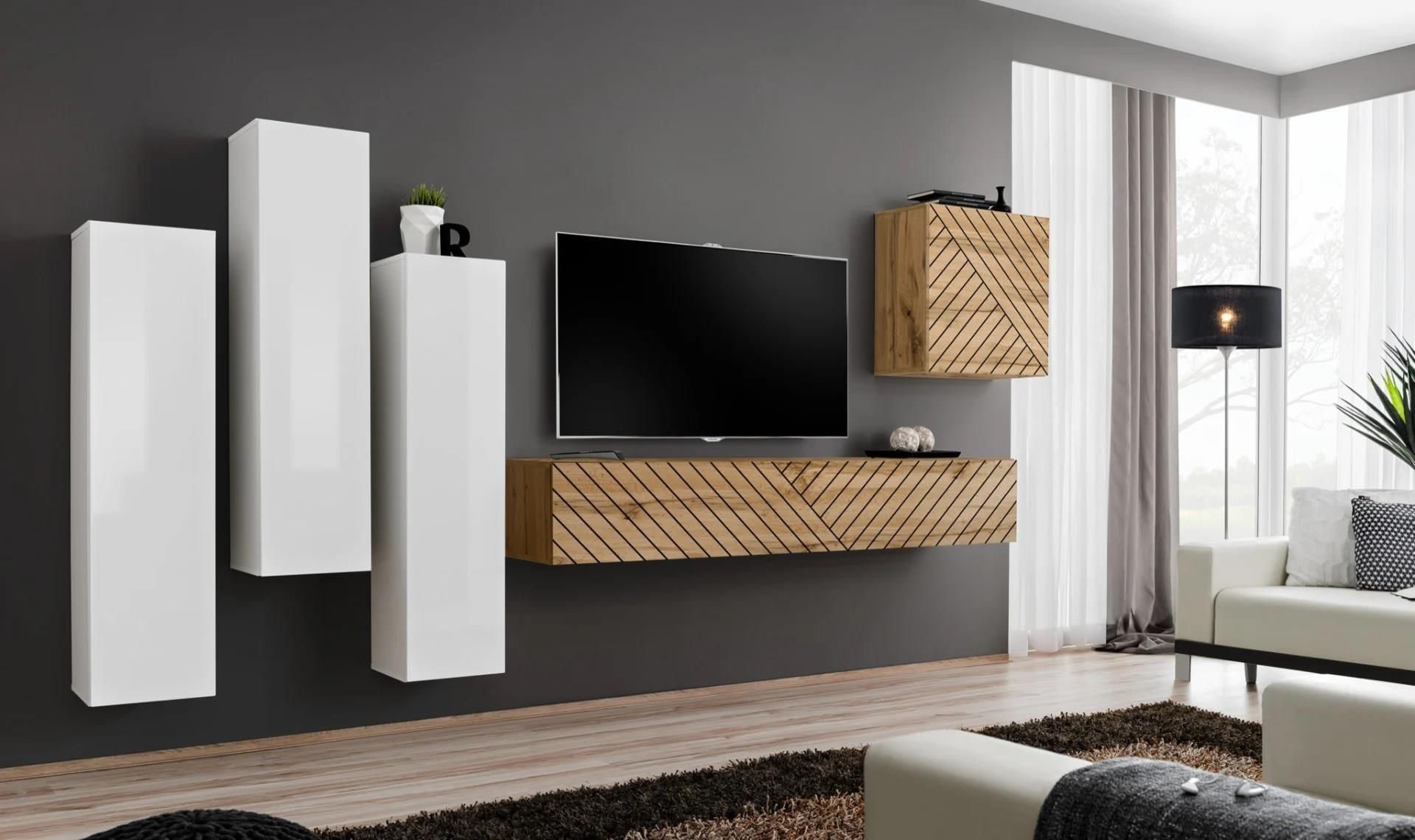 Meblościanka SWITCH LAMEL III biała/dąb wotan