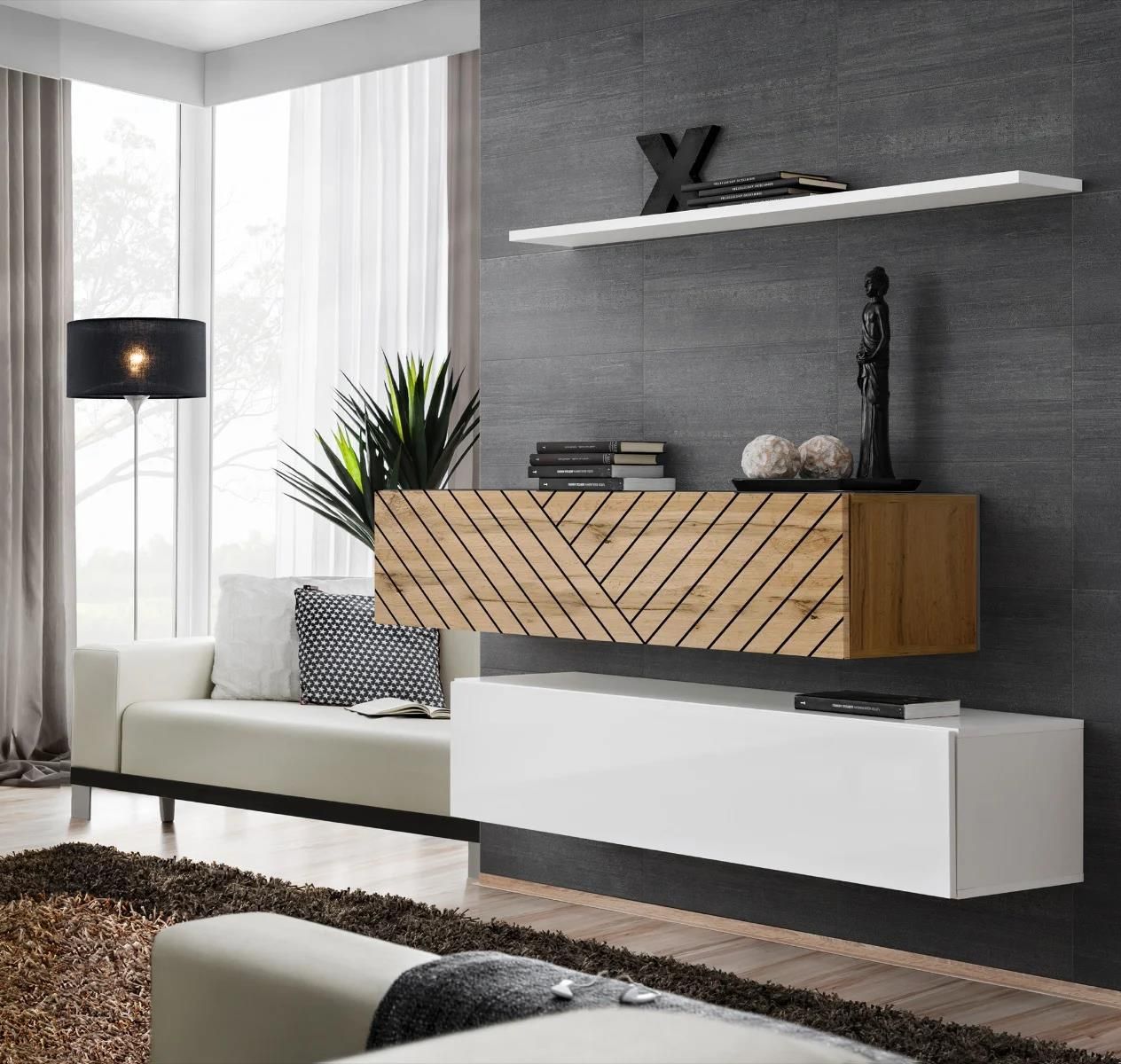 Asm Meble Meblościanka Switch Lamel Sb2 Biała/Dąb Wotan Recz