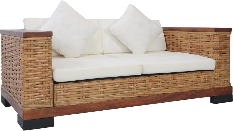 2-Osobowa Sofa Z Poduszkami Brązowa Naturalny Rattan Reda