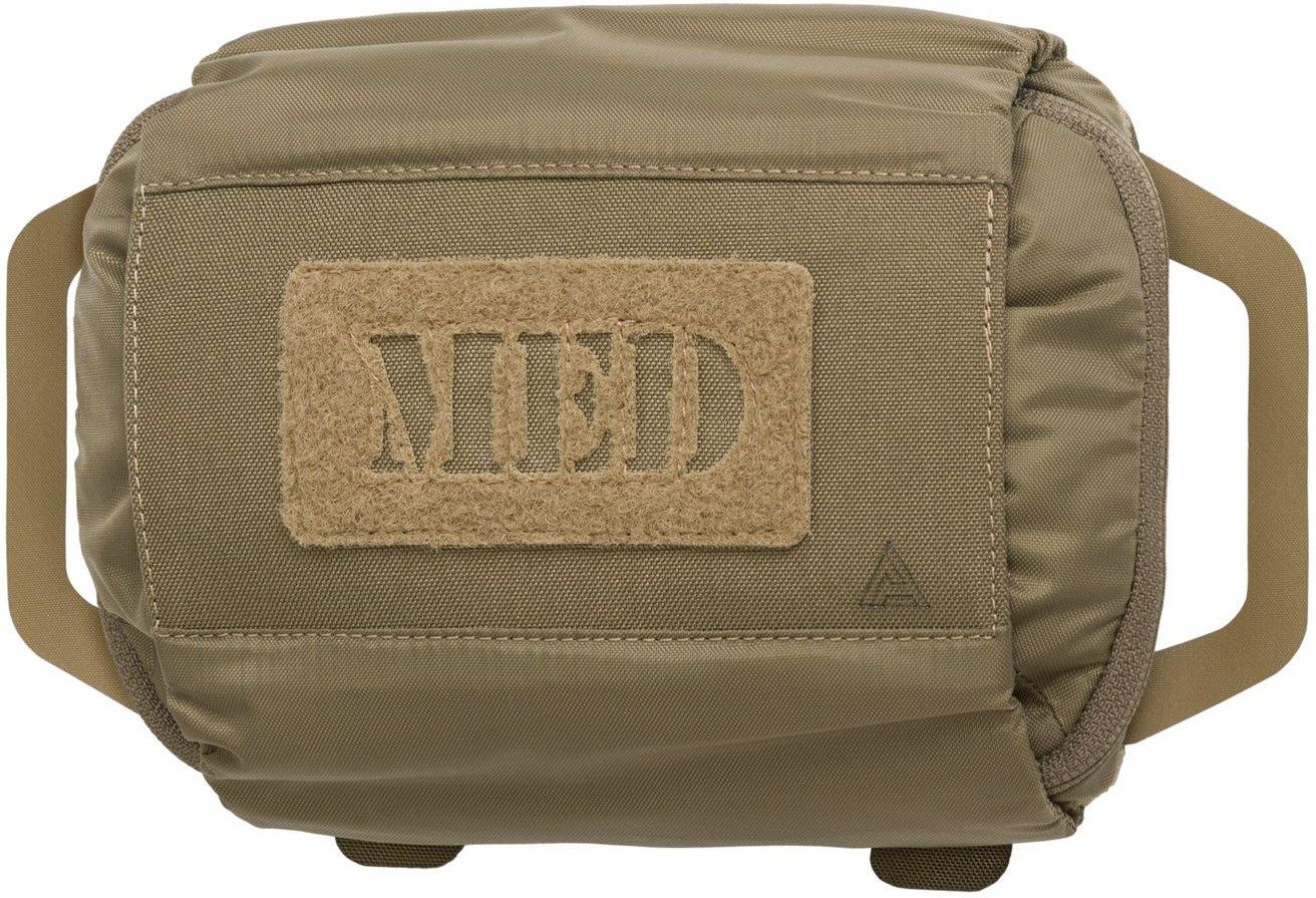 MED POUCH HORIZONTAL MK III® Nieznacznie zmodyfikowana i zaktualizowana wersja MED POUCH HORIZONTAL. Największą zmianą jest bardziej widoczny napis MED na froncie, który w laserowo wycinanej pętli Velcro® pozwala na dodanie różnych naszywek, w tym znaków IR. Sama apteczka zachowuje swoje najważniejsze cechy znane z poprzednich wersji. Częściowo elastyczna kieszeń zewnętrzna pomieści jeszcze więcej sprzętu medycznego, pozostając jednocześnie bardzo płaska. Chociaż ładownica została zaprojektowana głównie tak, aby pasowała do tylnej części rękawa MOSQUITO Modular Belt Sleeve®, może być używana na dowolnej powierzchni kompatybilnej z MOLLE / PALS lub na pasie do pistoletu o szerokości do 45 mm. Ładownica zapewnia łatwy, oburęczny dostęp do wkładki za pomocą antypoślizgowych ściągaczy z Hypalonu®. Wnętrze zapinanej na suwak wkładki zostało zaprojektowane tak, aby utrzymać na miejscu niezbędne elementy pierwszej pomocy w dobrze zaplanowanych elastycznych pętlach. Pętelka Velcro® z tyłu wkładki umożliwia przypięcie SHEARS Pouch.