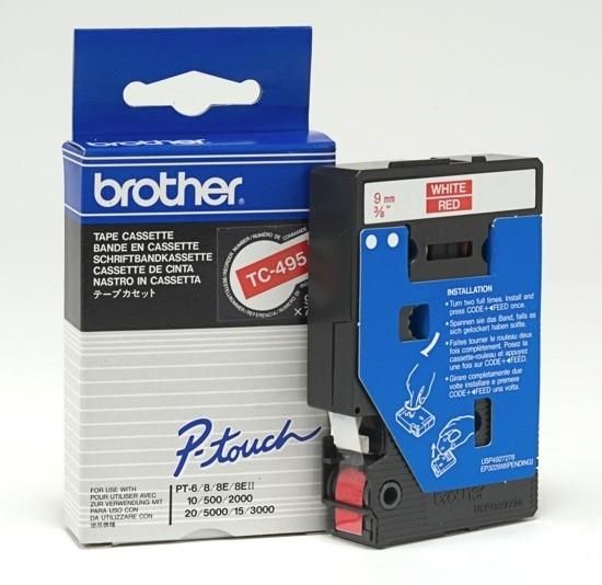 Brother TC-495 – biały nadruk na czerwonym tle, szerokość 9mm Opracowana z myślą o odporności na ekstremalne temperatury i czynniki środowiskowe, wszechstronna taśma TC-495 pozwala na druk trwałych etykiet. Czerwone etykiety z białym nadrukiem mogą być wykorzystywane zarówno w domu, biurze jak i innych miejscach pracy.  Główne cechy 9mm szerokości, 7,7m długości Standardowa przyczepność Wysokiej jakości, oryginalna taśma firmy Brother Zapewnia wyraźne i trwałe rezultaty TC-495 sprawdzi się idealnie w druku ogólnych etykiet na potrzeby biurowe i domowe. Taśma Brother z białym nadrukiem na czerwonym tle o szerokości 9mm pozwala między innymi na oznaczanie zawartości folderów z dokumentami, teczek archiwizacyjnych i szafek. Laminowane etykiety Brother P-touch zostały opracowane z myślą o przetrwaniu nawet w najbardziej ekstremalnych warunkach. Etykiety są odporne na działanie temperatury, zdrapywanie, ścieranie, zmywanie, promieniowanie UV czy substancje chemiczne.