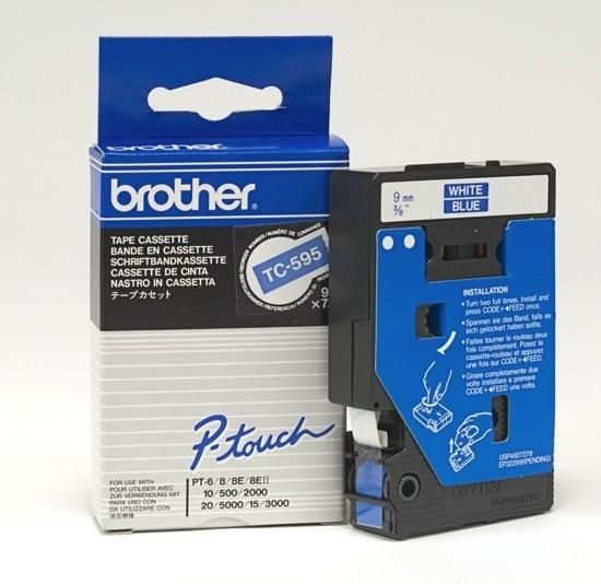 Brother TC-595 – biały nadruk na niebieskim tle, szerokość 9mm Opracowana z myślą o odporności na ekstremalne temperatury i czynniki środowiskowe, wszechstronna taśma TC-595 pozwala na druk trwałych etykiet. Niebieskie etykiety z białym nadrukiem mogą być wykorzystywane zarówno w domu, biurze jak i innych miejscach pracy.  Główne cechy 9mm szerokości, 7,7m długości Standardowa przyczepność Wysokiej jakości, oryginalna taśma firmy Brother Zapewnia wyraźne i trwałe rezultaty TC-595 sprawdzi się idealnie w druku ogólnych etykiet na potrzeby biurowe i domowe. Taśma Brother z białym nadrukiem na niebieskim tle o szerokości 9mm pozwala między innymi na oznaczanie zawartości folderów z dokumentami, teczek archiwizacyjnych i szafek. Laminowane etykiety Brother P-touch zostały opracowane z myślą o przetrwaniu nawet w najbardziej ekstremalnych warunkach. Etykiety są odporne na działanie temperatury, zdrapywanie, ścieranie, zmywanie, promieniowanie UV czy substancje chemiczne.