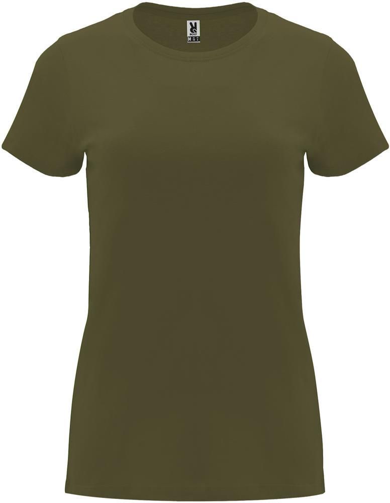 Damska dopasowana koszulka z krótkim rękawem. Okrągły prążkowany dekolt 1x1. Wzmocnione, kryte szwy na kołnierzu. Usuwalna metka.