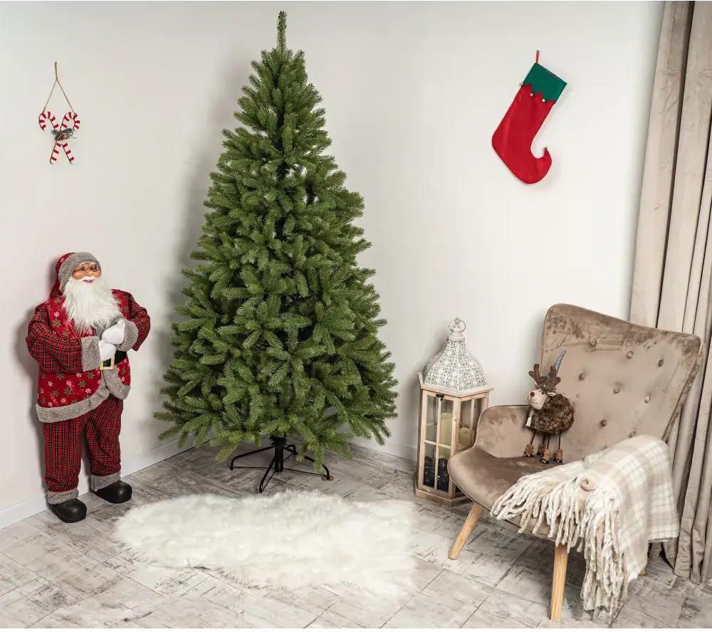 SZTUCZNA CHOINKA PE09 180 CM 100% PE (silikonowe gałązki) Prezentujemy Państwu niezwykle realistyczną choinkę sztuczną, wykonaną w całości z wysokiej jakości tworzywa sztucznego PE (polietylen). Gęste, zielone igły nadają jej naturalny wygląd, który wprowadzi świąteczną atmosferę do każdego wnętrza. Kolor igliwia Zielony Kod produktu PE09 Materiał wykonania Gałązki 100% PE (tylko trzpień wykonany jest z folii PCV), Długość czubka ok 20 cm Ilość tipsów (gałązek) 812 Rozpiętość maksymalna (mierzona u dołu) ok 105 cm Odległość od ziemi do korony ok. 25 cm Ilość poziomów gałęzi 12 Kolekcja 2025/2026 Waga 7,4 kg - im cięższa tym bardziej gęsta, waga z opakowaniem - 8 kg Czym wyróżniają się choinki? 🔹Naturalny wygląd: Dzięki zastosowaniu specjalnych technik barwienia, igły tych choinek mają jaśniejsze końcówki, co nadaje im niezwykle realistyczny i świeży wygląd. 🔹Gęstość: Gałązki są gęsto ułożone, co nadaje choince puszysty i pełny kształt. 🔹Miękkość: Igły wykonane z PE są miękkie i przyjemne w dotyku, dzięki czemu bezpiecznie można ozdabiać choinkę nawet małymi dziećmi. 🔹Trwałość: Choinki PE są odporne na odkształcenia, dzięki czemu zachowują swój kształt przez wiele lat. Nasza choinka posiada aż 812 tipsów z jaśniejszymi końcówkami oraz 12 poziomów gałęzi! Tak imponująca liczba tipsów (812!) w połączeniu z 12 gęstymi poziomami gałęzi sprawia, że choinka prezentuje się wyjątkowo okazale i bujnie. Tipsy są starannie wykonane, by doskonale imitować naturalne igliwie, zapewniając efekt maksymalnej gęstości i wypełnienia. Dzięki tej budowie, drzewko nie ma nieestetycznych prześwitów, a ozdoby świąteczne będą wyglądać zjawiskowo, zanurzone w głębokiej zieleni. To gwarancja efektu "wow" i bazy dla niezapomnianej świątecznej dekoracji! Metalowy stojak Dołączony do naszej choinki został zaprojektowany z myślą o stabilności i trwałości. Oferuje solidne wsparcie, zapewniając, że drzewko pozostanie w pozycji pionowej i bezpiecznej, nawet w środku świątecznych uroczystości. Wyposażony antypoślizgowe stopki, aby zapewnić beztroskie i przyjemne doświadczenie dekorowania. 🔹 Średnica: 55 cm 🔹 Rodzaj: czteroramienny 🔹 Tworzywo: metal 🔹 Kolor: ciemna zieleń 🔹 Wysokość ok 17 cm 🔹 Solidne wykonanie, profil z którego wykonany jest stojak ma aż 1,3 cm 🔹 3 metalowe śruby 🔹 Gumowe, antypoślizgowe nakładki na końcach nóżek Etapy rozkładania choinki Chcesz, aby Twoja choinka była ozdobą świątecznych wnętrz? Pamiętaj, że piękny wygląd drzewka to efekt starannego rozłożenia każdej gałązki. Poświęć temu trochę czasu i cierpliwości, a efekt Cię zachwyci.