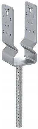 Podstawa słupa do betonu / kotwa przykręcana / uchwyt stalowy / baza stalowa przykręcana / mocowanie słupa do fundamentu / ocynkowana kotwa Podstawa słupa PSSZ typu „U” umożliwia stabilny montaż elementów drewnianych z betonem. Konstrukcja „siodełkowa” zapobiega bezpośredniemu kontaktowi drewna z podłożem, co zapewnia wentylację i wydłuża żywotność słupa. Wykonana ze stali ocynkowanej ogniowo, gwarantuje wysoką odporność na korozję i trwałość w warunkach zewnętrznych. Dane techniczne Rozmiar: 81 x 80 x 150 mm Średnica gwintu: ?16 Ilość: 1 szt. Materiał: S235 + B500B + cynk ogniowy Otwory: 26 x ?6 , 2 x ?11 Grubość: 4,0 mm Ochrona antykorozyjna: Cynk ogniowy - Powłoka nanoszona poprzez zanurzanie przedmiotu w stopionym cynku o temperaturze ok. 450 °C. Otrzymana grubość pokrycia to ok. 80–90 ?m. Grubowarstwowe zabezpieczenie zalecane jest dla wyrobów narażonych na długotrwałe działanie wilgoci, szczególnie dla elementów używanych w ogrodzie. Na powłokę można nakładać farby dekoracyjne przeznaczone dla powierzchni cynkowanych. MOCOWANIE Drewno wkręty do drewna - CTO ?10 wkręty do drewna – PWD ?10 wkręty ANW gniazdo Torx20 gwoździe pierścieniowe ANCHOR ?4 Na aukcjach dostępne są inne wymiary i modele. Instrukcja montażu Szeroki wybór podstaw słupa i kotew zatapianych – znajdź idealne rozwiązanie dla swojego projektu. Jesteśmy polskim producentem z 30-letnim doświadczeniem – sprawdź naszą ofertę kotew i mocowań.