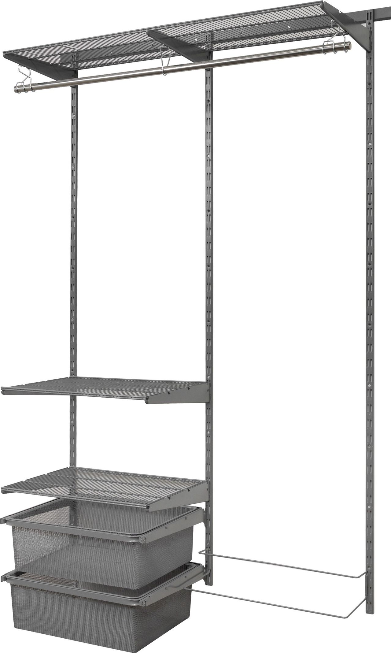 System zabudowy INTEGRI® jest modułowym rozwiązaniem dla osób, które szukają praktycznego i estetycznego sposobu na organizację przestrzeni. Pozwoli on zagospodarować nie tylko garderobę, ale również garaż, pralnię, warsztat czy dowolne pomieszczenie gospodarcze. Elementy Systemu INTEGRI® wykonane z wysokiej jakości materiałów, co gwarantuje trwałość i estetykę wykończenia. Dostępne są w różnych wariantach kolorystycznych oraz rozmiarach, dzięki czemu idealnie dopasują się do Twojego pomieszczenia i stylu. System INTEGRI® pozwala wygodnie przechowywać wszystkie swoje ubrania, buty, biżuterię, akcesoria i inne przedmioty. Dodatkowo, nasz system umożliwia łatwe dostosowanie przestrzeni do zmieniających się potrzeb, dzięki czemu zawsze będziesz mieć uporządkowane i schludne wnętrze. Nasze gotowe rozwiązania stanowią łatwy sposób na odmianę swojego wnętrza i mogą posłużyć za inspirację do wykreowania unikalnego stylu. Przedstawiamy zestaw przechowywania w szafie lub garderobie, który pomoże on w organizacji ubrań i butów. Rozwiązanie zawiera szyny ze wspornikami, półki z drutu, drążek na ubrania, kosze mesh oraz uchwyt na buty. Przykręć szyny do ściany, zamocuj wsporniki oraz pozostałe elementy. Zestaw można uzupełnić dowolnymi elementami INTEGRI. W komplecie znajdują się wkręty i kołki do przykręcenia szyn do ściany. Wymiary kompletu: Wysokość: 200 cm Szerokość: 125 cm Głębokość: 42 cm Kolor: szary Rozwiązanie zawiera następujące elementy: LP NAZWA WYMIARY ILOŚĆ 1 Szyna pozioma 1250x43 1 2 Listwa 2000 3 3 Wspornik podwójny 430x73 3 4 Wspornik pojedynczy 430x70 4 5 Półka druciana 407x1165 1 6 Półka druciana 407x582 2 7 Drążek 1245x25 1 8 Zaślepka do drążka 2szt fi25 1 9 Uchwyt drążka podwójny 106x76 2 10 Uchwyt drążka pojedynczy 110x74 1 11 Uchwyt na buty 573,5x194x97 1 12 Rama kosza 572x426 2 13 Kosz mesh 535x410x185 2