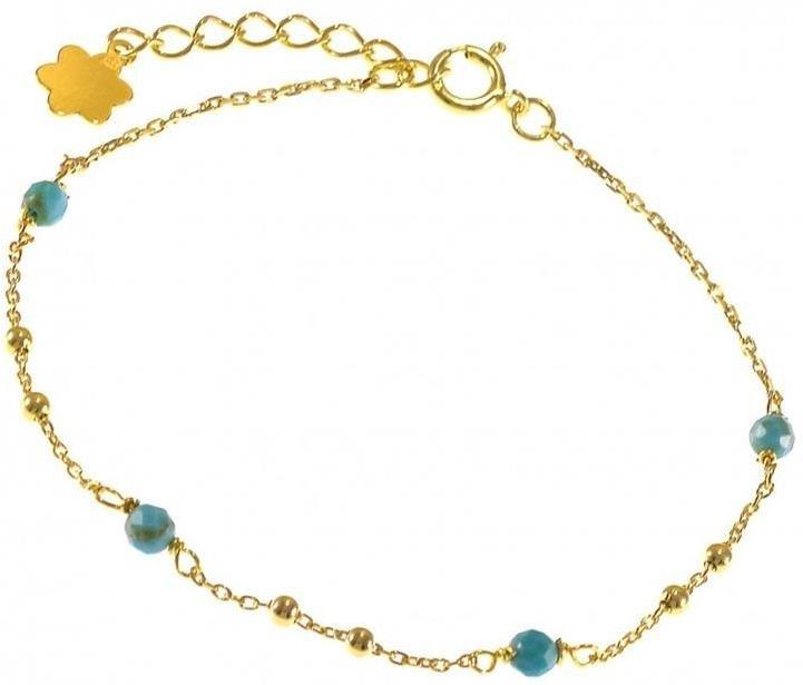 Bransoletka wykonana ze srebra próby 925 , pozłacanego 24 karatowym, żółtym złotem Kamień: Magnezyt Rozmiar kamienia: 3 MM Długość :17,5 cm + przedłużka do 19,5 cm Możliwość zmiany kamienia WIĘCEJ INFORMACJI Produkt wykonywany ręcznie