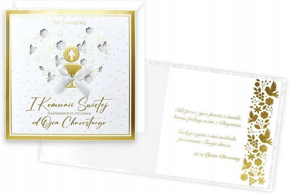Karnet Primus Komunia (od ojca chrzestnego) Rok wydania: - Rodzaj okładki: Inna Autor: Stan: Nowa ISBN: 5901924485599 Wymiar: - Nr wydania: - Seria: - Ilość stron: - Waga: 0.5 kg Indeks: ate-536811 Kartki z serii Primus, to kartki najwyższej jakości, pięknie zdobione m.in złotą lub srebrną folią, …