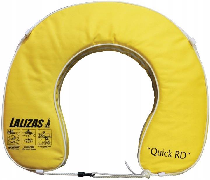 PODKOWA RATUNKOWA QUICK RD 145N ŻÓŁTA 21307 Producent: LALIZAS Symbol produktu: 21307 Opis Podkowa ratunkowa "QUICK RD" 145N. Zewnętrzna część (pokrowiec) wykonany z poliestru, wewnątrz znajduje się pianka o dużej wyporności. Kształt podkowy umożliwia każdemu bezpieczne, szybkie i wygodne skorzystanie z niej w przypadku konieczności użycia. Jasny kolor gwarantuje dobrą widoczność w każdych warunkach. Materiał i napisy na podkowie nie blakną, są odporne na promienie UV. Kolor: żółty