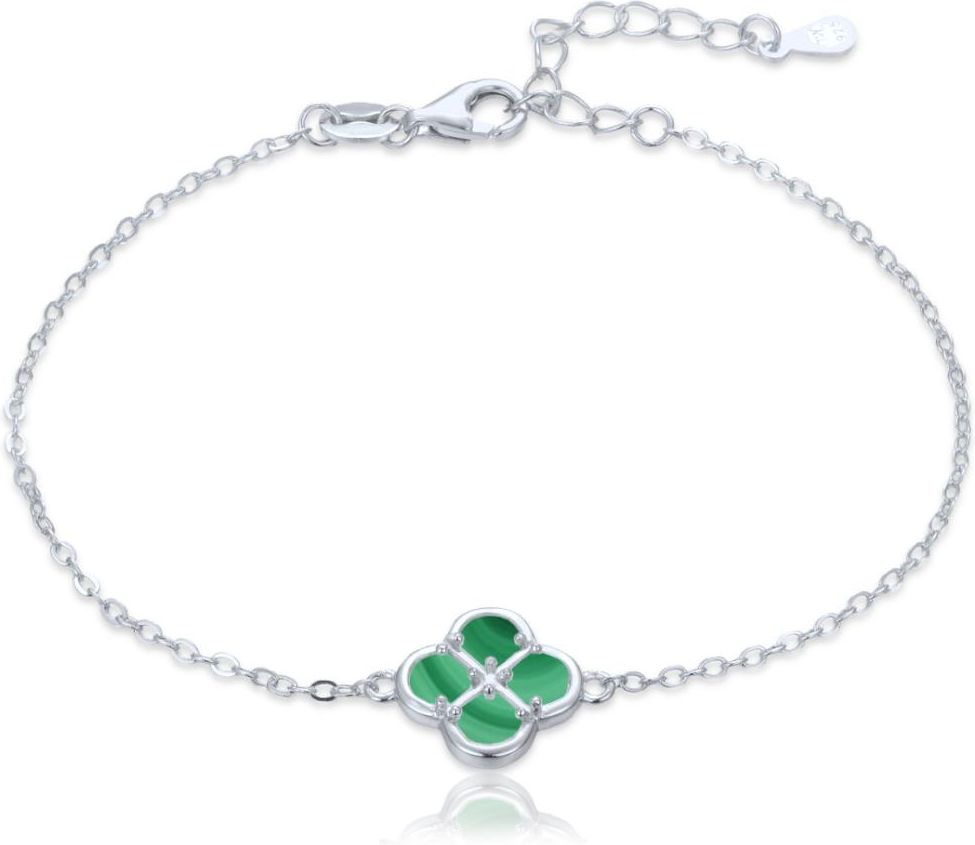 Minet Srebrna bransoletka koniczyna z malachitem Reda