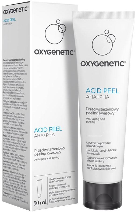 OXYGENETIC ACID PEEL AHA+PHA, przeciwstarzeniowy peeling kwasowy, krem 50ml Reda