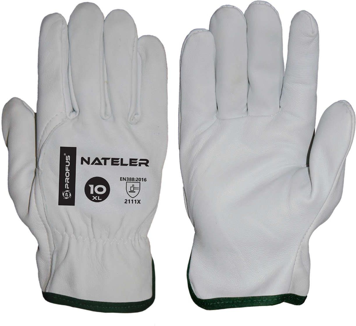 Rękawice ochronne NATELER Rękawice ochronne NATELER na tle innych rękawic wyróżniają się tym, że zostały wykonane w całości z miękkiej koziej skóry. Ten naturalny materiał wysokiej klasy sprawia, że rękawice są wyjątkowo wytrzymałe i odporne na urazy a jednocześnie pozwalają na płynność ruchów palców. Dlatego też rękawice te polecane są do prac wymagających zwiększonej manualności i precyzji. Z koziej skóry Rękawice ochronne NATELER zostały wykonane z wysokiej jakości skóry licowej koziej. Z tej racji produkt ten jest wyjątkowo wytrzymały, a zarazem przyjazny i bezpieczny dla rąk. Aby wzmocnić konstrukcję rękawic, kciuk i palec wskazujący zostały wykonane w całości ze skóry. Ponadto NATELER posiada marszczenia na mankiecie, które uniemożliwiają zsunięcie się rękawicy z dłoni. Zastosowanie Rękawice ochronne NATELER przeznaczone są do ochrony rąk przy wszelkiego rodzaju pracach w środowisku suchym, a w szczególności montażowych, budowlanych i innych wymagających zwiększonej manualności oraz precyzji dłoni. Cechy produktu: • skóra licowa kozia, grubość 0,9 - 1,0 mm • wykonana w całości ze skóry • marszczenie mankietu w nadgarstku • kciuk oraz palec wskazujący wykonane w całości ze skóry • znak CE kategoria II, zgodność z normami EN 420 oraz EN388 • ochrona mechaniczna: odporność na ścieranie (poziom 2), odporność na przecięcie (poziom 1), wytrzymałość na rozdzieranie (poziom 2), odporność na przekłucie (poziom 1), odporność na przecięcie TDM (nie dotyczy) 2 1 2 1 X KARTA PRODUKTU DEKLARACJA ZGODNOŚCI