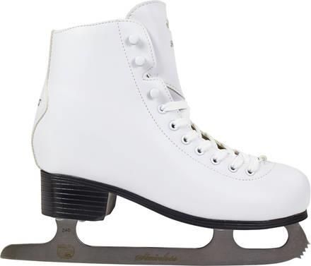 Klasyczne białe łyżwy figurowe włoskiej marki Roces o czystym wyglądzie i designie retro. Wysoki obcas i ostrze łyżwy figurowej ze stali węglowej z frezem na palce. Cholewka i język wykonane z PVC.W przypadku tych łyżew Roces Paradise możesz zachować klasyczny wygląd lub z łatwością urozmaicić je kolorowymi sznurowadłami lub innymi akcesoriami, aby uzyskać spersonalizowany wygląd. Łyżwy figurowe Roces Paradise to luksusowy, pięknie wykonany klasyczny model z butem ze skóry syntetycznej. Wyściełany but ma wygodną, oddychającą i pochłaniającą wilgoć podszewkę z mikrofibry. But ma również anatomiczną wkładkę. Dla nieco większego komfortu język jest wyściełany. Krótko mówiąc, idealny model do jazdy na łyżwach dla najbardziej wymagających riderów. Specyfikacja: Kolor: biały Płeć: kobiety Materiał cholewki: skóra syntetyczna Materiał podszewki: mikrofibra Materiał żelazka: Stal Żelazka są już wstępnie naostrzone Rozmiar: 37 Wysokiej jakości łyżwy mają nylonową cholewkę i anatomiczną wyściółkę. Ich zapinanie jest szybkie i precyzyjne dzięki sznurowadłom. Zaletą jest ostrze wykonane ze stali węglowej, zapewniające doskonałą wydajność. Dzięki wysokiej jakości materiałom i doskonałemu wykonaniu te łyżwy są doskonałym wyborem!\Cechy:\nSyntetyczna cholewka, syntetyczny język \nPodeszwa zewnętrzna z PVC \nSyntetyczny system sznurowania.syntetyczna podszewka\nAnatomiczna wkładka\nPłytka ze stali węglowej\nStopień sztywności: 20\n