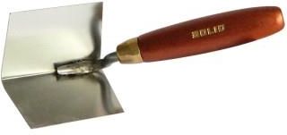 Kątowa kielnia do spoin ze stali nierdzewnej wewnętrzna 60x90mm z drewnianą rączką.
