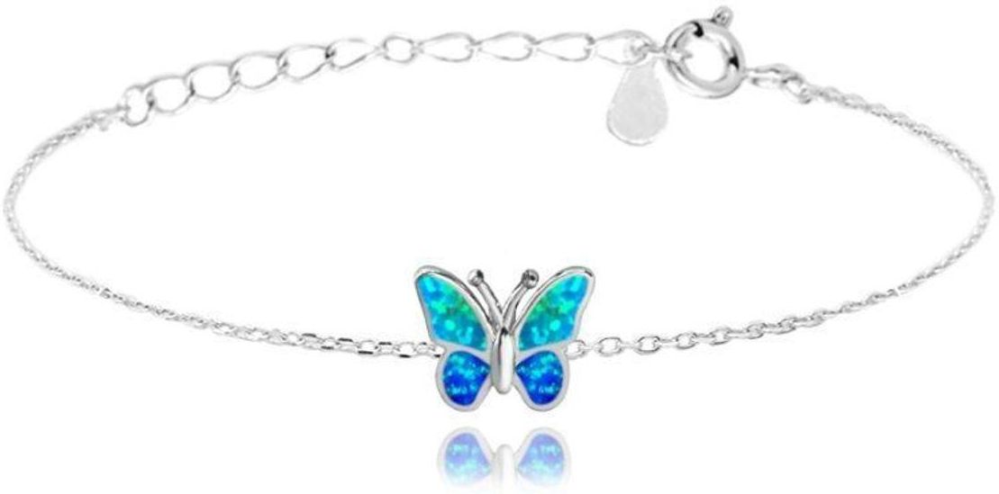 Opinie Srebrna bransoletka błyszczący motyl z niebieskim opalem Reda
