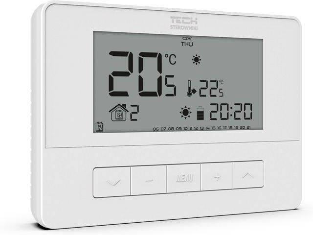 Tech-Sterowniki Bezprzewodowy Regulator Pokojowy Dwustanowy Tech Sterowniki T-4.2 W_Pok.290.6.V2_N.01.Pl01 Biały (W_POK2906V2_N01PL01) Bezprzewodowy regulator pokojowy T-4.2 od Tech to innowacyjne rozwiązanie, które znacząco podnosi komfort życia w Twoim domu. Dzięki możliwości precyzyjnego zarządzania temperaturą, urządzenie to nie tylko wpływa na samopoczucie użytkowników, ale także przyczynia się do efektywności energetycznej. Wybierając regulator, warto zwrócić uwagę na jego funkcjonalność oraz kompatybilność z różnymi systemami grzewczymi. Typ i zastosowanie regulatorów Regulatory, takie jak T-4.2, to urządzenia, które znajdują swoje zastosowanie w różnych typach pomieszczeń, w szczególności w pokojach. To niezwykle funkcjonalne rozwiązanie umożliwia kontrolę temperatury, co jest szczególnie ważne w zimowych miesiącach, kiedy odpowiednia temperatura ma kluczowe znaczenie dla komfortu użytkownika. Bezprzewodowy regulator współpracuje z szerokim zakresem urządzeń grzewczych, w tym listwami podłogowymi oraz innymi sterownikami instalacji, co czyni go wszechstronnym narzędziem w zarządzaniu systemami grzewczymi. Kompatybilność i systemy smart home Wybierając regulator pokojowy, warto zwrócić uwagę na jego kompatybilność z istniejącymi systemami grzewczymi. Model T-4.2 współpracuje z różnorodnymi urządzeniami, co czyni go idealnym rozwiązaniem dla osób poszukujących efektywnego sposobu na zarządzanie temperaturą w ich domu. Dodatkowo, możliwość integracji z systemami smart home sprawia, że użytkownik może zarządzać ogrzewaniem zdalnie, co zwiększa wygodę i elastyczność w codziennym użytkowaniu. Zasilanie i rodzaj montażu Regulator T-4.2 został zaprojektowany z myślą o prostocie obsługi. Zasilany jest za pomocą baterii, co eliminuje konieczność prowadzenia dodatkowych przewodów. Możliwość montażu w różnych miejscach w pomieszczeniu sprawia, że można dostosować go do indywidualnych potrzeb, co jest szczególnie istotne w przypadku ograniczonej dostępności punktów zasilających. Funkcje dodatkowe i sterowanie Dzięki bogatemu zestawowi funkcji, zarządzanie temperaturą w pomieszczeniach staje się jeszcze prostsze. Oto kluczowe funkcje, które wyróżniają ten regulator: bezprzewodowa komunikacja – umożliwia łatwą instalację oraz elastyczność w doborze miejsca montażu, dokładność pomiaru – pozwala na precyzyjne ustawienie temperatury z dokładnością do 0,1°C, tygodniowy program ogrzewania – umożliwia zaplanowanie pracy urządzenia na cały tydzień, co wpływa na oszczędność energii, program dzień/noc – dostosowuje temperaturę do rytmu dnia użytkownika, funkcja Optimum Start – pozwala na wcześniejsze rozpoczęcie ogrzewania, aby w danym momencie pomieszczenie było już ciepłe, tryb grzania/chłodzenia – daje możliwość korzystania z urządzenia przez cały rok. Te funkcje są istotne, ponieważ umożliwiają użytkownikowi lepsze dostosowanie ogrzewania do stylu życia, co przekłada się na oszczędność energii i zwiększenie komfortu. Wyświetlacz i czujniki Regulator T-4.2 wyposażony jest w podświetlany ekran, co ułatwia jego obsługę, niezależnie od pory dnia. Wbudowany czujnik pokojowy pozwala na bieżąco monitorować temperaturę, co zwiększa precyzję działania urządzenia. Dodatkowe możliwości, takie jak chwilowe podświetlanie wyświetlacza, zapewniają komfort użytkowania, szczególnie w słabo oświetlonych pomieszczeniach. Wymiary urządzenia Wymiary regulatora Tech T-4.2 są dostosowane do standardowych rozmiarów i wynoszą 80 mm x 120 mm x 25 mm. Dzięki tym wymiarom, urządzenie jest estetyczne oraz łatwe w montażu, co pozwala na jego umiejscowienie w różnych przestrzeniach, bez obawy o zajmowanie zbyt dużej powierzchni.