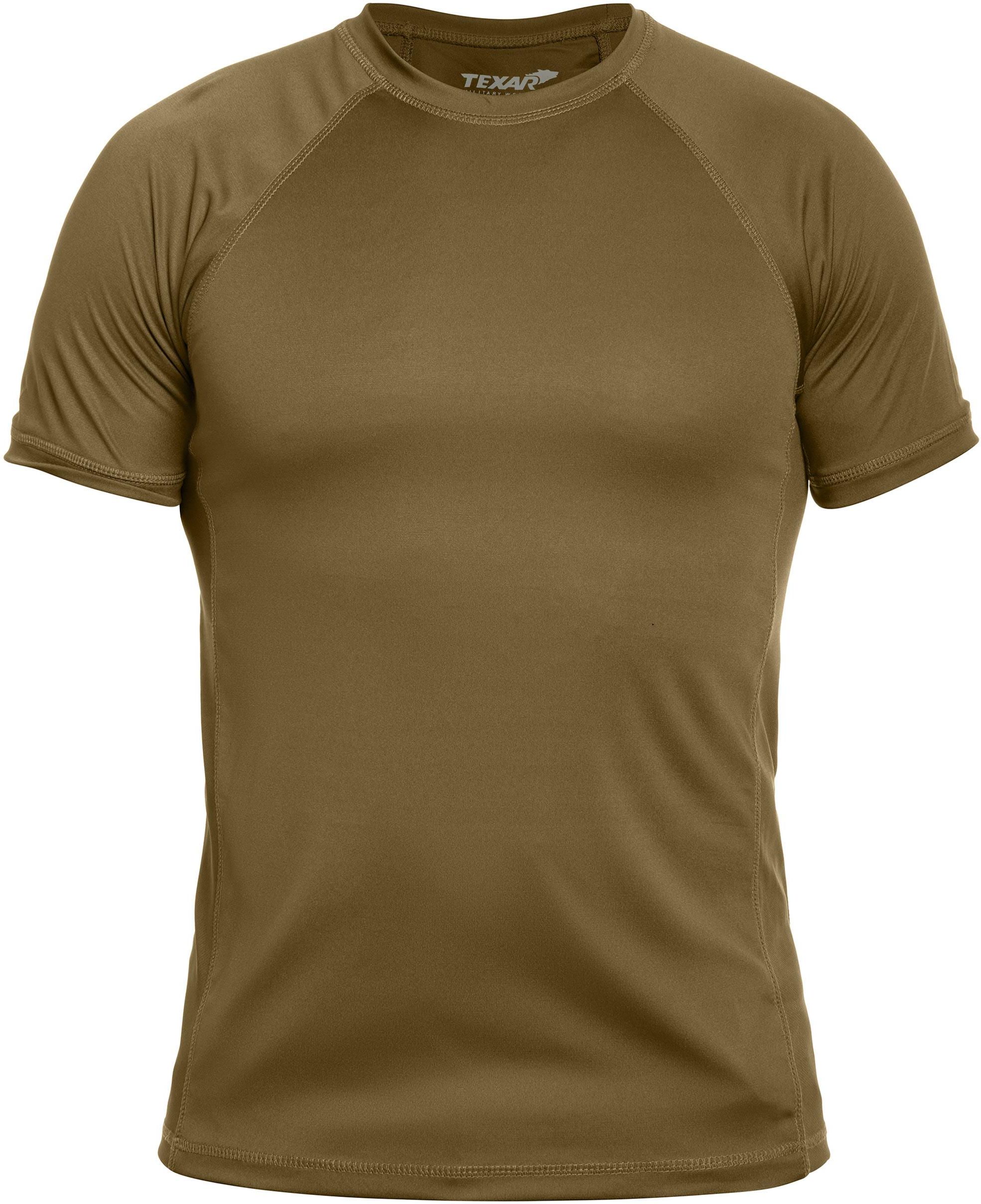 Koszulka termoaktywna z krótkim rękawem, w kolorze coyote. Wykonana z elastycznego, szybkoschnącego materiału, idealna zarówno do codziennego noszenia, jak i podczas aktywności fizycznych, takich jak jazda na rowerze, rolkach, bieganie czy trening siłowy.
