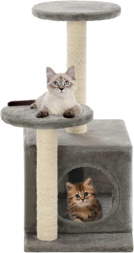 Podaruj swoim kocim przyjaciołom odrobinę luksusu dzięki naszemu bogato wyposażonemu drapakowi! Centrum zabaw dla kotów, o solidnej konstrukcji pokrytej miękkim, wygodnym pluszem, to idealne miejsce dla Twoich zwierzaków, gdzie będą mogły drapać, wspinać się, leżeć, chować się i odpoczywać. Twoi koci przyjaciele mogą ostrzyć pazurki na słupkach owiniętych w sizalowe sznurki, co zapewnia zdrowy upust dla ich drapieżnych instynktów. Będą także urządzać sobie gonitwy, przeskakując w górę i w dół po tym centrum zabaw. Kiedy już się znudzą, pokochają odpoczynek na wyższych platformach, z których jest lepszy widok. Mogą również schować się w przytulnym domku, aby się zdrzemnąć. Jest odpowiedni dla kociąt. Dzięki tym wszystkim funkcjom ten plac zabaw dla kotów stanie się ulubionym miejscem Twoich futrzanych przyjaciół! Kolor: szary Materiał: materiał drewnopochodny, tektura, pluszowa tkanina, sizalowy sznur Wymiary ogólne: 40 x 30 x 60 cm (dł. x szer. x wys.) Wymiary domku: 30 x 30 x 30 cm (dł. x szer. x wys.) Wymiary podstawy: 40 x 30 cm (dł. x szer.) Z domkiem, słupkami do drapania i platformami Materiał: Poliester: 100%