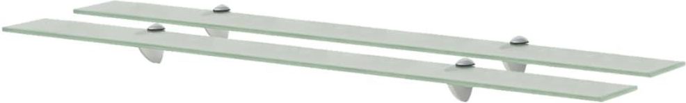 VidaXL Półki szklane, 2 szt., 100 x 20 cm, 8 mm vidaXL Kolor: Array Rozmiar: Array Podwieszana półka ścienna będzie nie tylko stylowa, ale i funkcjonalna oraz stanie się znakomitym dodatkiem do salonu, sypialni lub łazienki. Jest idealna do postawienia na niej wacików, mydelniczek i innych akcesoriów łazienkowych lub do wystawienia przedmiotów dekoracyjnych w dowolnym pomieszczeniu, w którym chcesz wprowadzić nowoczesny wygląd. Szklana półka wykonana została z hartowanego szkła o grubości 8 mm i posiada 2 uchwyty ze stopu cynku. Wytrzyma ona obciążenie do 15 kg. Akcesoria montażowe są załączone w przesyłce, a jej montaż jest prosty. Kolor: mrożone szkło Materiał półki: hartowane szkło bezpieczne Materiał uchwytu: stop cynkowy Wymiary półki: 100 x 20 cm (dł. x szer.) Grubość szkła: 8 mm Maksymalne obciążenie: 15 kg Prosty montaż Zawartość przesyłki: 2 x półka 4 x duży uchwyt 2 x torebka z akcesoriami montażowymi