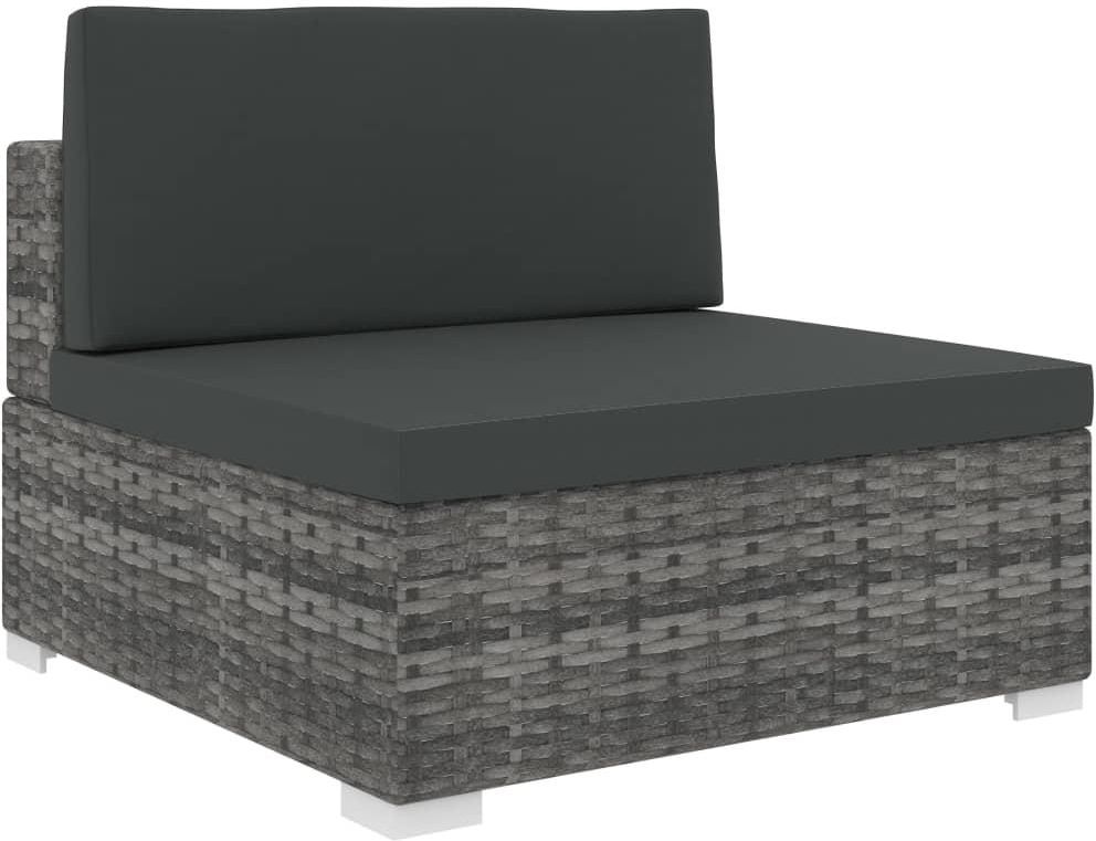 Vidaxl Środkowa Sofa Z Poduszką Polirattan Szara Reda