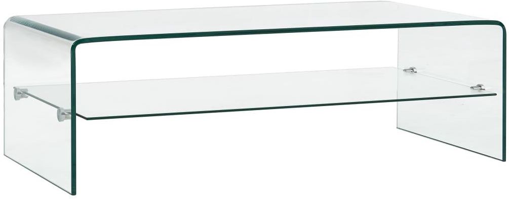 vidaXL Stolik kawowy, przezroczysty, 98 x 45 x 31 cm, szkło hartowane Wprowadź nutkę nowoczesnego uroku do swojego wnętrza za pomocą tego ponadczasowego stolika kawowego w minimalistycznym stylu! Stolik kawowy wykonano z hartowanego, bezpiecznego szkła, które jest bezpieczniejsze i mocniejsze niż normalne szkło. Dzięki wbudowanej półce ten praktyczny mebel pozwoli zachować porządek w salonie, oferując idealne miejsce do przechowywania książek, czasopism oraz różnych innych niewielkich przedmiotów, które chcesz mieć pod ręką. Dodatkowo solidna konstrukcja zapewnia stolikowi wyjątkową trwałość. Zrelaksuj się i ciesz czasem spędzonym z rodziną i przyjaciółmi przy tym uroczym stoliku kawowym. Kolor: bezbarwny Materiał: hartowane, bezpieczne szkło Wymiary: 98 x 45 x 31 cm (dł. x szer. x wys.) Grubość szklanego blatu: 10 mm Grubość półki: 5 mm Z półką 26