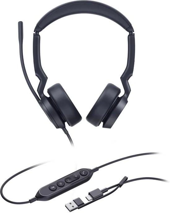 Yealink UH44 Dual UC USB-C/A. Typ produktu: Zestaw słuchawkowy. Technologia łączności: Przewodowa. Rekomendowane użycie: Biuro/centrum telefoniczne. Pasmo przenoszenia: 20 - 20000 Hz. Długość kabla: 2,15 m. Waga produktu: 162 g. Kolor produktu: Czarny