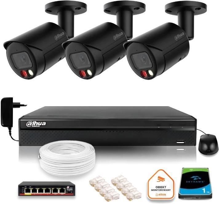 Dahua Zestaw Monitoringu Ip 4Mpx 2K 3 Kamery Czarne Zewnętrzne Z Dyskiem 1Tb (Z35525B3) Rejowiec Fabryczny