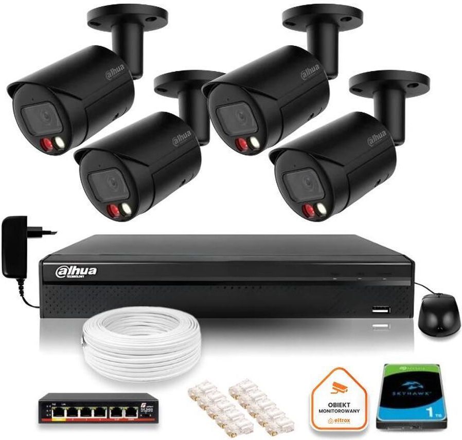 Dahua Zestaw Monitoringu Ip 4Mpx 2K 4 Kamery Czarne Zewnętrzne Z Dyskiem 1Tb (Z35525B4) Rejowiec Fabryczny