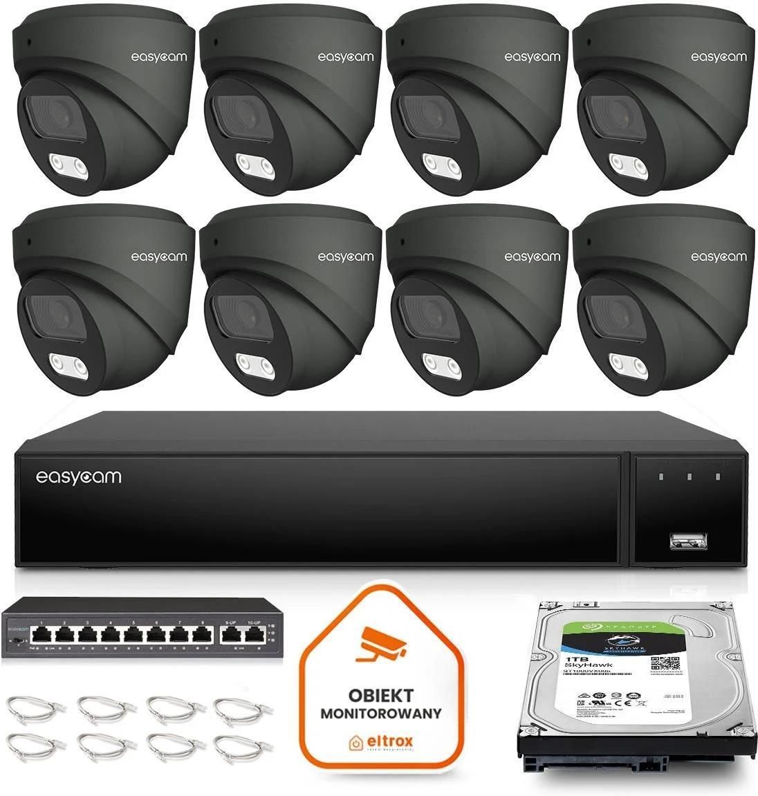 Zestaw do monitoringu IP Easycam 8 kamery EC-IP-D8MP30DL-G 8MPx POE