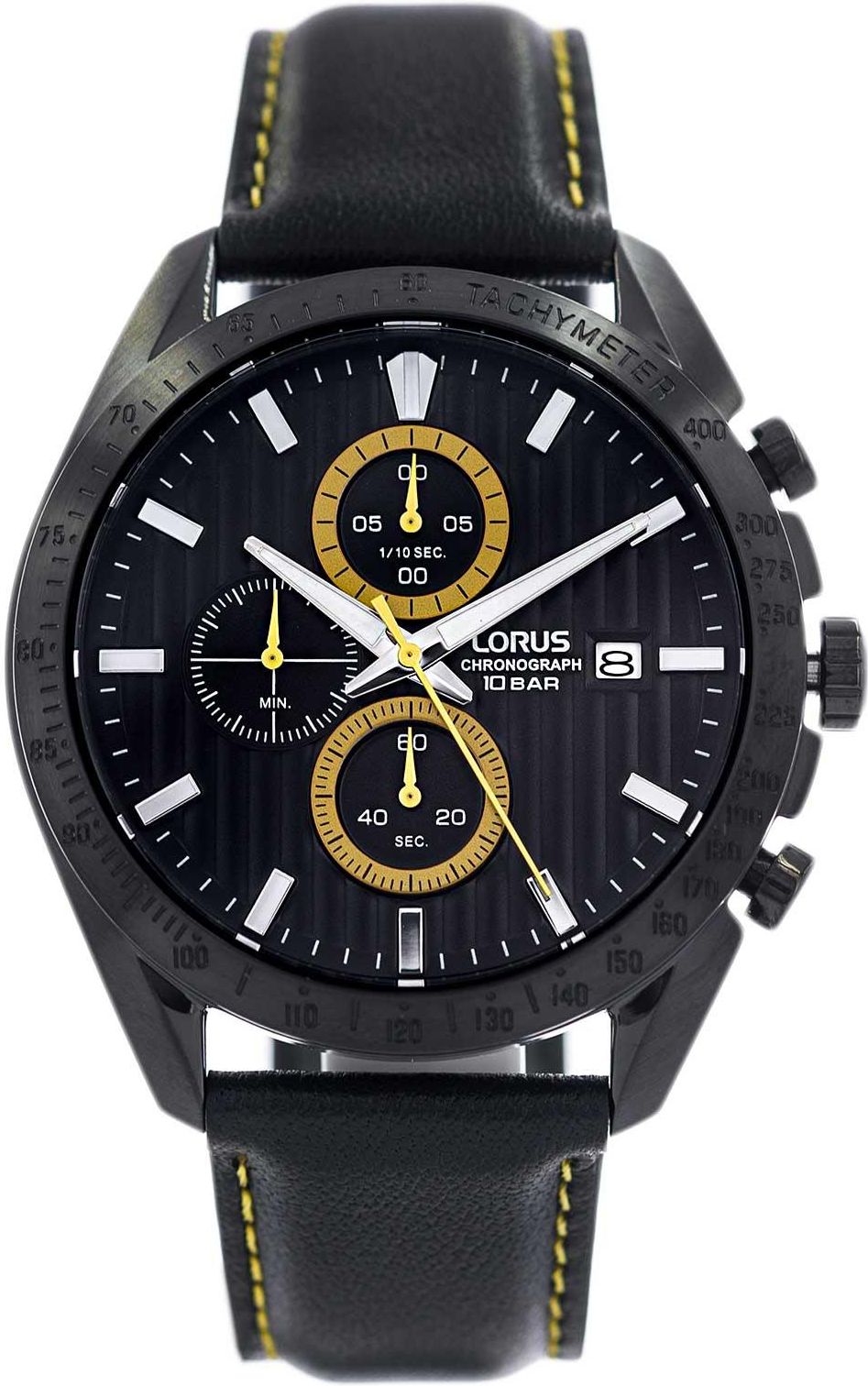 Zegarek męski Lorus 'Modny Choronograf'. Zegarek męski w stylu sportowym, który swoim wyglądem sprawia, że jest ponadczasowy a zarazem wpisuje się w najnowsze trendy modowe. Zegarek zawieszony został na czarnym skórzanym pasku, a składa się z koperty ze stali szlachetnej w czarnym kolorze, w której pod szkiełkiem mineralnym osadzono piękną czarną tarczę z charakterystycznymi żółtymi dodatkami. MECHANIZM: Męski zegarek Lorus Classic 'Yellow Sport' wyposażony jest w kwarcowy mechanizm, zasilany za pomocą baterii. Posiada bardzo wysoką dokładność mierzenia czasu +/- 10 sekund w przeciągu 30 dni. KOPERTA: Mechanizm japoński mieści się w stalowej, wytrzymałej kopercie w kolorze czarnym. Wykorzystanie wysokiej jakości stali w kopercie gwarantuje, że zegarek odporny jest na korozję i uszkodzenia oraz nie powoduje alergii. Stop stali szlachetnej charakteryzuje się optymalna odpornością na korozje. W zegarkach Lorus wykorzystany jest jeden z najlepszych stopów stali 316L. SZKŁO: Zegarek wyposażony w szkło mineralne ( 5 stopień w skali Mohsa) - najczęściej spotykane, bardzo przejrzyste, czyste, cienkie, elastyczne i odporne na pęknięcia. TARCZA: Tarcza zegarka w kolorze czarnym z wyraźnymi srebrnymi indeksami zapewnia przejrzysty i czytelny wygląd. Żółte dodatki na tarczy dodają nowoczesnego wyglądu. PASEK: W zegarku zamontowano czarny pasek z delikatnej skórki o gładkiej fakturze z żółtym przeszyciem. ZAPIĘCIE: Tradycyjna, stalowa sprzączka w kolorze czarnym. WODOSZCZELNOŚĆ: Zegarek z wodoszczelnością 100m (10 ATM), gwarantuje właścicielowi, że nie musi bać się zachlapań, czyli np. mycia rąk. Oprócz tego w zegarku można się kąpać, pływać na basenie itp. DATOWNIK: Wygodny datownik umieszczony na tarczy ukazuje w formie popularnego okienka aktualny dzień miesiąca i tygodnia. Zapraszamy to zapoznania się z pozostałą ofertą zegarków męskich Lorus. > Zegarki damskie Zegarki Lorus skierowane są do mężczyzn wyróżniających się siłą charakteru, niezależnych i zdecydowanych. Mężczyzna Lorus nie obawia się nowych wyzwań, jest pewny siebie i swoich wyborów, ceni wysoką jakość i wyróżniający się design. Lorus to marka dla ludzi młodych i młodych duchem. Aktywnych, pozytywnie nastawionych do życia i potrafiących się nim cieszyć każdego dnia. Ludzi, dla których zegarek jest czymś więcej niż tylko narzędziem wskazującym czas. Jest czymś, co cieszy oraz wyraża energię i witalność osoby, która go nosi. Lorus charakteryzuje się wysoką jakością mechanizmów, wykonania i ciekawymi projektami. Jest częścią Seiko Watch Corporation i istnieje na międzynarodowych rynkach nieprzerwanie od kwietnia 1982 roku. W ciągu lat swojej działalności zdobyła setki milionów konsumentów na całym świecie. Marka została doceniona w Ameryce Północnej, Europie, Afryce i Oceanii. Nasz sklep internetowy z zegarkami Lorus jest autoryzowanym dystrybutorem marki. Wszystkie damskie i męskie zegarki Lorus zakupione w naszym sklepie posiadają 2 letnią gwarancję i zapakowane są w oryginalne opakowanie.