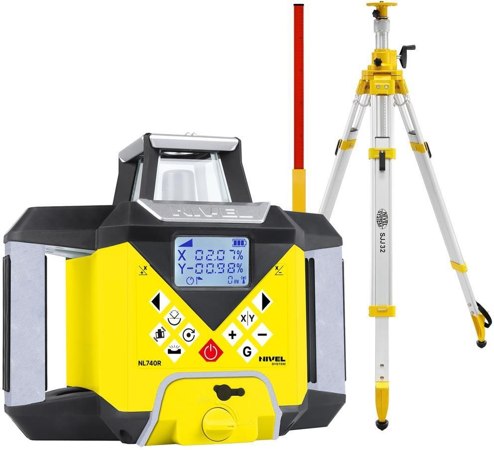 Wielozadaniowy niwelator laserowy z cyfrowymi spadkami oraz autowpasowaniem. NIWELATOR LASEROWY NIVEL SYSTEM NL740R DIGITAL ZESTAW SJJ32 LS-24 Laser obrotowy Nivel System NL740R DIGITAL to wszechstronne i wielofunkcyjne narzędzie do realizacji prac budowlanych. Dedykowany jest do prac na otwartych przestrzeniach, jak i wewnątrz pomieszczeń. Ten model został wyposażony w czerwoną wiązkę laserową. Instrument zbudowany został na bazie sprawdzonej i wydajnej technologii laserowej NIVEL gwarantującej wysoką precyzję pomiarów. Niwelator wyznacza płaszczyznę poziomą (z możliwością pochylenia cyfrowo w 2 osiach), pionową, a zastosowany pionownik laserowy określa pion lub kąty proste. Sprzęt wyposażony został w system automatycznego wpasowania wiązki laserowej. Dzięki tej funkcji w łatwy sposób można ustawić spadki (prace poziome) czy wyszukać kierunek (prace pionowe). Laser dobrze się sprawdza na długich odcinkach robót (zasięg 700 m), w trudnych warunkach terenowych – szybko poziomuje, jest odporny na drgania terenu. NL740R DIGITAL oferowany jest standardowo z czujnikiem, na którym różnice wysokości wyświetlane są cyfrowo. To w znacznie ułatwia i przyspiesza pomiary. Sprzęt został wyposażony w intuicyjny interfejs z wyświetlaczem LCD, dzięki czemu możliwa jest obsługa zdalna za pomocą pilota radiowego. wszystko widać gołym okiem– czerwony kolor lasera jest na tyle intensywny, że zrzutowana na płaszczyznę wiązka jest dobrze widzialna nawet z odległości kilkudziesięciu metrów od stanowiska daleki zasięg– możliwość pracy na otwartej przestrzeni w odległości 700 m (średnica pracy lasera) wydajna niwelacja– możliwa dzięki funkcji automatycznego wpasowania i wyszukania spadku, cyfrowy czujnik laserowy z numerycznym wyznaczaniem różnicy wysokości (czujnik laserowy, cyfrowy) w znacznym stopniu usprawnia niwelację i podnosi jej dokładność (nie trzeba odczytywać wartości z łaty, wartość ta prezentowana jest na wyświetlaczu czujnika) praca z płaszczyzną pochyloną– wiązka lasera może być pochylana w sposób cyfrowy w jednym lub dwóch kierunkach w zakresie ±10%, wyznaczanie spadków w terenie wykonywane jest cyfrowo i bez konieczności przeliczania wysokości poszczególnych stanowisk laser w każdą stronę– głowica emitująca płaszczyznę laserową w poziomie wyznacza dodatkowo laser liniowy, co ułatwia definiować płaszczyznę pod kątem prostym względem wyznaczonej linii szybkie samopoziomowanie– kompensator szybko i precyzyjnie poziomuje instrument, a alarm „poruszenia” niwelatora eliminuje wykonywanie błędnych pomiarów przy nieumyślnym potrąceniu czy rozpoziomowaniu jednoosobowa obsługa– do obsługi niwelatora i wyznaczania wysokości wystarczy tylko jedna osoba zdalne sterowanie– parametry lasera można zmieniać za pomocą dostarczanego w standardowej konfiguracji pilota radiowego (zasięg 100m) wydajne zasilanie– akumulator Li-ion (5000mAh), możliwość ładowania w czasie pracy bogaty pakiet standardowy– niwelator wyposażony jest w praktyczne akcesoria wspierających prace (czujnik laserowy DIGITAL, uchwyt na łatę laserową, pilot, akumulatory, ładowarka, tarczka laserowa, kufer transportowy) praca w każdych warunkach– pancerna, wzmocniona metalowym korpusem obudowa, metalowa osłona głowicy laserowej, gumowe narożniki amortyzują i chronią laser przed uszkodzeniami wskutek uderzeń i wstrząsów, sprzęt odporny na działanie kurzu i wody (IP65) Łatwe i szybkie pomiary Niwelator NL740R DIGITAL posiada funkcję autopoziomowania, po włączeniu sprzęt sam spoziomuje się i natychmiast gotowy jest do pracy. Generowana wiązka laserowa jest widzialna, wyświetlona na ścianie tworzy linię referencyjną dla prac poziomych lub pionowych. Podczas pracy z czujnikiem i łatą laserową uzyskujemy dokładny zestaw niwelacyjny, pomiary dokonywane są jednoosobowo. Cyfrowe wskazania różnicy wysokości na wyświetlaczu (czujnik laserowy, cyfrowy) znacznie skracają proces niwelacji. Funkcja skanowania umożliwia zawężenie wyświetlanej wiązki w zadanym zakresie, w ten sposób uzyskujemy referencyjną linię lasera jedynie tam, gdzie przeprowadzamy prace.Uniwersalne zastosowanieSprzęt umożliwia pracę zarówno z wiązką poziomą, jak i pionową. Płaszczyzna może być pochylana cyfrowo (z panelu starowania lub pilota) w jednym lub dwóch kierunkach. Dzięki tej funkcji laser może być stosowany przy pracach tj.: wylewanie posadzek, niwelacja, przygotowanie powierzchni pod kostkę brukową, boisko, czy drogę zapewniając odprowadzenie wody zgodnie z zaprojektowanymi spadkami. Przy pracach konstrukcyjnych przydatnym staje się pionownik laserowy, który stanowi oś generowanej rotacyjnie płaszczyzny laserowej. Funkcjonalność ta zapewnia dokładne wpasowanie się lasera przy pracach prostopadłych, podczas przenoszenia punktów (pionownik wyświetlany jest do dołu i do góry jednocześnie). W przypadku prac na zewnątrz i przy dużych zasięgach stosowany jest czujnik laserowy zapewniający możliwość odbioru sygnału w zakresie 700 m (średnica pracy). Różne prędkości obrotów głowicy sprawiają, że sprzęt znajduje zastosowanie przy pracach instalacyjnych wewnątrz budynku, jak i przy sterowaniu maszynami, gdzie wymagane są wyższe prędkości (800 obr/min).Niezastąpiony na budowieNiwelator NL740R DIGITAL został wyposażony w elektroniczny kompensator, który skutecznie eliminuje drgania oraz zapewnia precyzyjne poziomowanie płaszczyzny laserowej. Elektroniczny kompensator, w porównaniu z magnetycznym, jest dokładniejszy. Jest to istotny czynnik przy wykonywaniu pomiarów budowlanych, gdzie teren może drgać wskutek pracy ciężkiego sprzętu. Dzięki eliminacji drgań uzyskujemy pewne i dokładne pomiary. Sprzęt jest odporny na działanie kurzu i wody (IP56). Głowica rotacyjna osłonięta jest metalowym korpusem, a obudowa lasera wyposaż