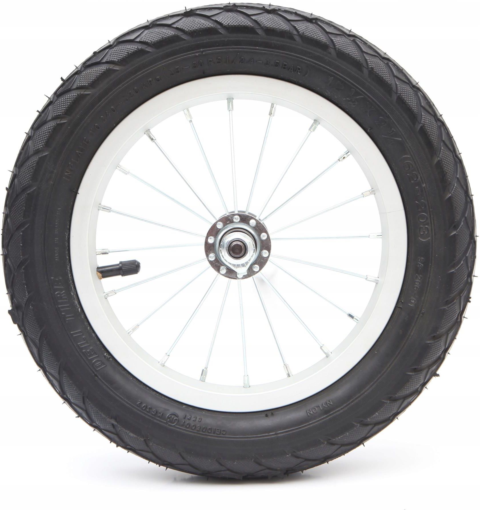 Koło przód/tył 12" z ogumieniem Obręcz aluminiowa: Wykonana z aluminium dobrej jakości, co gwarantuje odporność na rdzę. Waga całego koła z ogumieniem: 1,30 kg (rozmiar 12" ). Piasta mocna: Stalowa, umożliwiająca wykorzystanie koła zarówno w mocno obciążonych rowerach, jak i wózkach transportowych. …