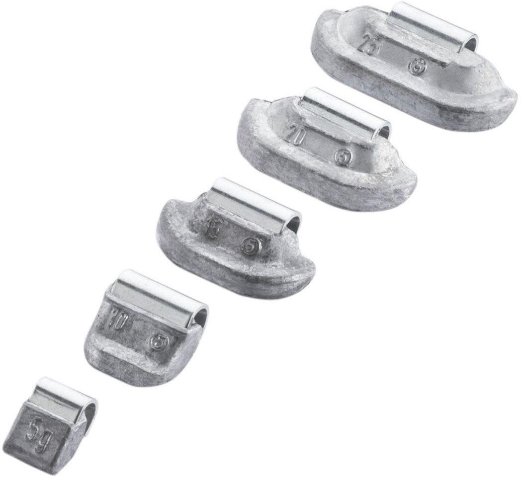 Zestaw 500 szt. ciężarków nabijanych cynkowych FIVESTARS 5-25g do felg stalowych Polskie ciężarki cynkowe FIVESTARS to doskonała alternatywa dla droższych, zagranicznych odważników. Wytwarzane w profesjonalnym procesie produkcyjnym gwarantują precyzyjną masę, gładkie wykończenie i odporność na działanie wilgoci i soli. Cynk posiada zbliżoną plastyczność i gęstość do ołowiu, jednak jest bezpieczny dla środowiska i legalny w krajach UE. Główne cechy ciężarków FIVESTARS: Przeznaczone są do wyważania kół stalowych w samochodach osobowych, terenowych i dostawczych. Ciężarki cynkowe, w przeciwieństwie do odważników ołowianych są legalne w krajach UE (zgodne z dyrektywą Parlamentu Europejskiego i Rady 2000/53/WE) Z uwagi na elastyczność i gęstość cynku stanowią doskonałą alternatywę dla stali - są małe, łatwo układają się na rancie felgi. Wygoda, ekologia i bezpieczeństwo użytkowania. Wysoka jakość wykonania - uchwyt ciężarka nie odgina się i zapewnia trwałe zamocowanie