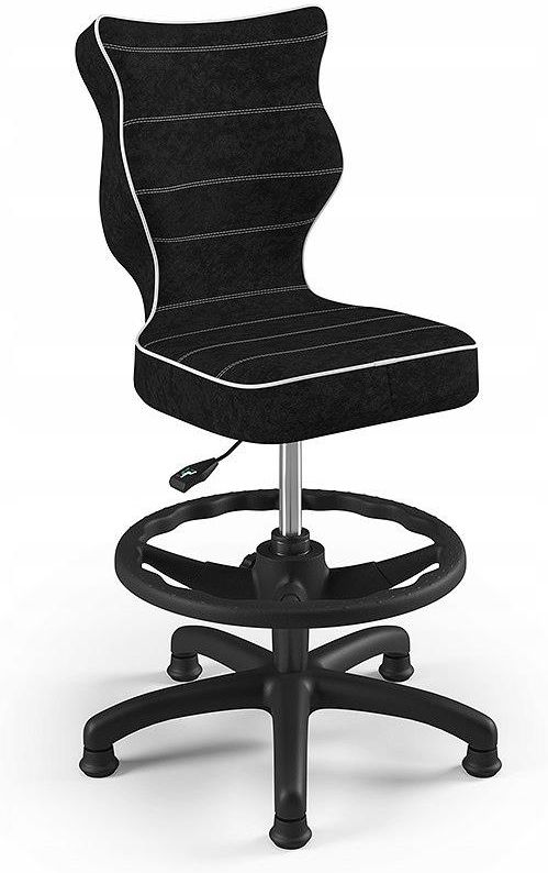 Entelo Krzesło dziecięce Petit Czarne Visto z podnóżkiem rozmiar 4 - dopasowane do wzrostu 133-159cm Model Petit z podnóżkiem dopasowany do biurek o wysokości 70-82cm Nowoczesne krzesło z podnóżkiem Petit z białą podstawą jest innowacyjną propozycją. Cała seria charakteryzuje się głównym motywem …