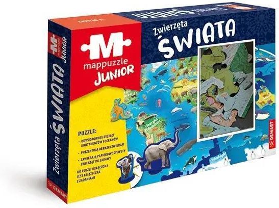PUZLE Układanka Prezent Na URODZINY Dla DZIECI Mappuzzle Junior - Zwierzęta Producent: Demart Mappuzzle Junior. Zwierzęta świata (Wiek 4+) Wyrusz w fantastyczną wyprawę po świecie i poznaj różne gatunki zwierząt! Zestaw Mappuzzle zawiera dwa rodzaje puzzli 20 figurek zwierząt miniksiążeczkę z …