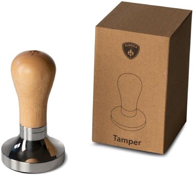 Regulowany tamper Eureka, który pozwala na dostosowanie do każdego rozmiaru dłoni. Najważniejsze cechy:- PASUJE DO DŁONI KAŻDEGO BARISTY: Zaprojektowany tak, aby można go było dostosować do użytkownika. BARDZO ŁATWA REGULACJA: W 4 różnych wysokościach, dzięki odczepianym pierścieniom. POMAGA ZAPOGIEBAĆ KANAŁOWANIU: Znaczna waga ułatwia pracę baristy. NAJWYŻSZA JAKOŚĆ I WYKOŃCZENIE: Podstawa ze stali nierdzewnej powstała z zastosowaniem precyzyjnej obróbki mechanicznej, co zapewnia doskonałą estetykę, jakość oraz trwałość produktu. MATERIAŁY: Podstawa z metalu i gumy, uchwyt z drewna orzecha włoskiego.