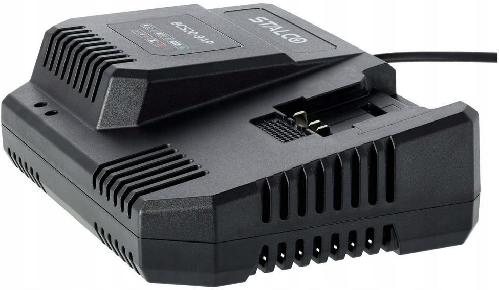 STALCO ŁADOWARKA 9A 250W BCS20-9AP Najważniejsze cechy: Moc znamionowa [W] 250 Napięcie znamionowe [V] 220 - 240 Częstotliwość znamionowa [Hz] 50 / 60 Napięcie wyjściowe [V] 18 - 20 Prąd wyjściowy [A] 3,6 / 5,6 / 8,6 Waga [kg] 0,9 PRODUKT WYPRODUKOWANY ZOSTAŁ PRZEZ POLSKĄ MARKĘ STALCO Opis produktu: Ładowarka 9A BCS20-9AP jest niezastąpiona w warsztatach, w domach i na wyposażeniu ekip budowlanych. To urządzenie pozwalające na bardzo szybkie naładowanie baterii i przywrócenie jej funkcjonalności. Ma moc znamionową 250 W, a waży zaledwie 900 g. Ładowarka 9A BCS20-9AP jest przeznaczona do uzupełniana baterii wyposażonych w Li-ion S-Volt battery system. Pasuje do wszystkich baterii polecanych do narzędzi akumulatorowych STALCO. Sprawdza się przy ładowaniu akumulatorów o dowolnej pojemności. Posiada system aktywnego chłodzenia, dlatego w razie takiego zapotrzebowania można użytkować ją przez wiele godziny bez przerwy. Solidna obudowa jest dobrze zabezpieczona przed zanieczyszczeniami i wilgocią. To zapewnia bardzo długą żywotność ładowarki. System S-Volt Do pracy różnych elektronarzędzi są potrzebne inne ilości energii w zależności od obciążenia na danym etapie wykonywania czynności. Jest to szczególnie widoczne przy pracy z urządzeniami bezprzewodowymi, gdzie przepływ prądu powinien być zintegrowany z pobieraną energią, a całość musi mieć ustawienia pozwalające na wydajną pracę. System akumulatorowy S-Volt to nowoczesne rozwiązanie, które pozwala uporać się z tym problemem. To elektroniczny system automatycznie regulujący ilość dostarczanej energii, która nie będzie powodowała przegrzewania i przeciążeń, a w efekcie utraty wydajności akumulatorów i urządzeń. To wszystko możliwe jest dzięki zastosowaniu jednego akumulatora do wielu narzędzi.