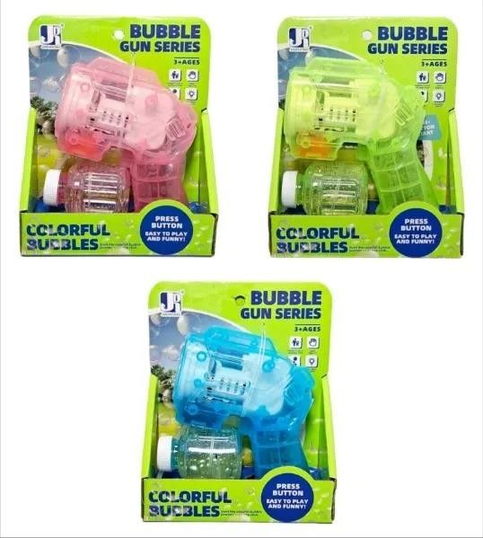Pistolet do baniek mydlanych z płynem do baniek, dostępny w trzech kolorach – różowy, zielony, niebieski. Po naciśnięciu przycisku wyrzuca kolorowe bańki. Produkt występuje w kilku wersjach kolorystycznych, wybierany losowo. Cena dotyczy jednej sztuki. Produkt zapakowany w kartonowe opakowanie. …
