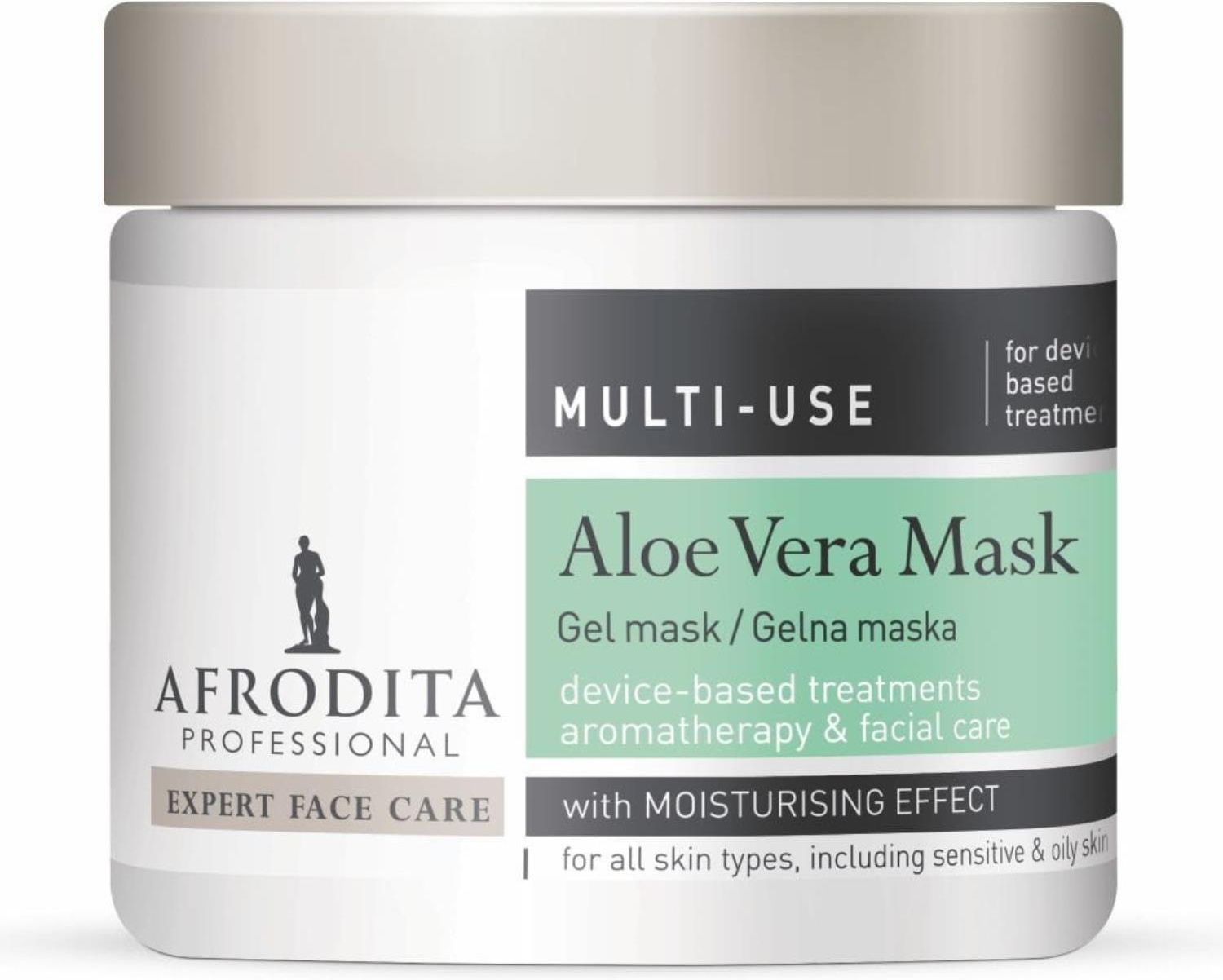 Afrodita Face Mask Maska Do Twarzy AloeDzięki skoncentrowanemu sokowi z liści aloesu i ekstraktowi z korzenia prawoślazu zapewnia obfite nawilżenie każdemu rodzajowi skóry. Jednocześnie łagodzi podrażnienia i łagodzi uczucie dyskomfortu skóry. Odnawia skórę i wzmacnia jej naturalną barierę ochronną.Idealny w aromaterapii jako podłoże bazowe dla olejków eterycznych, nie zmieniające ich naturalnych właściwości. Odżywki i olejki eteryczne szybko i równomiernie mieszają się z bazą żelu. Nadaje się również do wszystkich zabiegów wykorzystujących urządzenia, które wymagają użycia produktów na bazie wody. Niezastąpiony w pielęgnacji skóry podrażnionej, zaczerwienionej słońcem.Delikatnie chłodzi podczas aplikacji. Zachwyca lekką żelową konsystencją, która nie powoduje przetłuszczenia skóry.Niezastąpione w wielu profesjonalnych zabiegach leczniczych:Stosowany jako podłoże bazowe dla olejków eterycznych w aromaterapii,Włączanie różnych serum/ampułek do zabiegów na twarz,W zabiegach aparaturowych elektrostymulacji, jonoforezy, ultradźwięków i oczyszczania ultradźwiękowego.Kluczowe zalety produktu:Łagodzi podrażnienia skóryZnacząco poprawia nawilżenie skóryStymuluje naturalny proces regeneracji komórek skóryLekka, nietłusta, żelowa konsystencjaDoskonały przewodnik fal ultradźwiękowychJak używać:Nałóż obficie maskę na dokładnie oczyszczoną i stonizowaną skórę. Pozostawić do pracy na ok. 15 minut, następnie zmyć letnią wodą. Kontynuuj, stosując wybrane produkty pielęgnacyjne.Zalecamy stosowanie maski 2-3 razy w tygodniu lub w razie potrzeby.