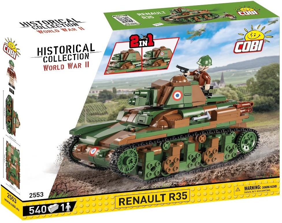 COBI 2553 Renault R35 "Renault R-35 to popularny francuski lekki czołg piechoty (Char légere model 1935R) z początkowego okresu II wojny światowej. Nazwa Renault R-35, choć bardzo popularna nie była jednak określeniem oficjalnym. R-35 był następcą leciwego i pamiętającego Wielką Wojnę czołgu …