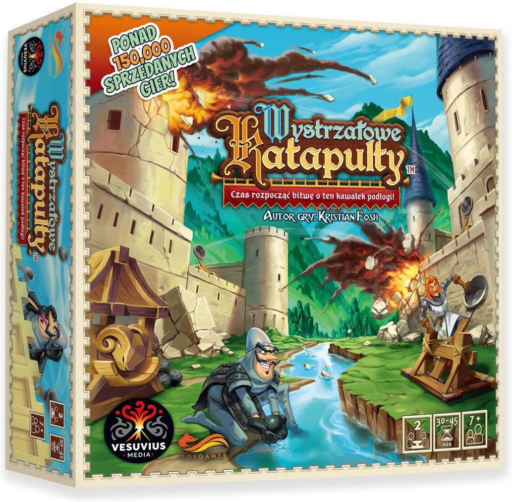 WYSTRZAŁOWE KATAPULTY Wiek: 7+ Liczba graczy: 2 Czas gry: 30-45 min Dwa wspaniałe rody, mieszkające w swoich odległych królestwach. Gdyby tylko nie było pomiędzy nimi pradawnej urazy… Zbuduj swój zamek, rozstaw rycerzy, załaduj katapulty i użyj swojego sprytu i techniki, by wygrać bitwę! Powal wszystkich rycerzy przeciwnika i zwycięż! Gotowi? Cel… Pal! Zbuduj zamek Wymierz swoją katapultę Pokonaj przeciwnika! ZAWARTOŚĆ: 2 plansze gracza, 2 katapulty, 6 głazów, 10 rycerzy (po 5 na gracza), 2 bramy, 32 cegieł (po 16 na gracza), 2 miarki, 12 kart akcji. • Wkrocz na prawdziwe pole bitwy – buduj zamki, ustawiaj rycerzy i odpalaj katapulty! • Błyskawiczna akcja i salwy śmiechu przy każdym trafieniu! • Trenuj refleks, celność i spryt w emocjonującej rozgrywce pełnej zwrotów akcji. • Graj jeden na jednego lub w drużynach – im więcej graczy, tym większe emocje! • Zachwycające wykonanie i efektowne elementy gwarantują, że nikt nie przejdzie obok gry obojętnie.