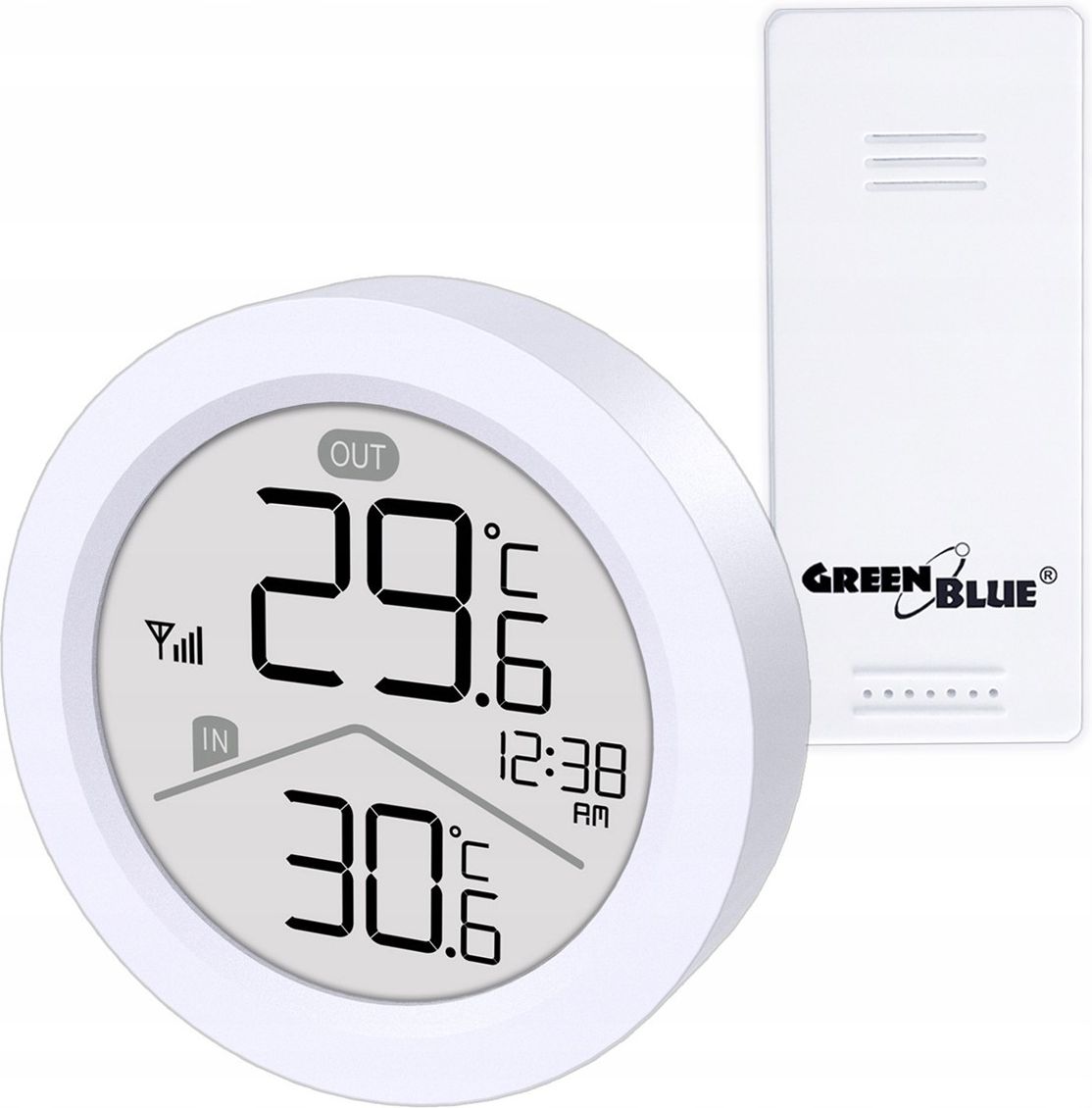 STACJA POGODOWA POGODY BEZPRZEWODOWA EKRAN TERMOMETR CZUJNIK BEZPRZEWODOWY GB162 (92610) Stacja pogody umożliwia jednoczesne wyświetlanie temperatury wewnętrznej oraz zewnętrznej, co pozwala na bieżąco kontrolować warunki w pomieszczeniu i na zewnątrz budynku Bezprzewodowy czujnik temperatury zewnętrznej o stopniu ochrony IP44 zapewnia niezawodne działanie w warunkach zewnętrznych i jest odporny na zachlapania Czujnik może być ustawiony na płaskiej powierzchni lub zawieszony dzięki wbudowanemu otworowi montażowemu, co pozwala łatwo dopasować sposób instalacji do miejsca pomiaru Duży i czytelny wyświetlacz LCD zapewnia szybki oraz wygodny odczyt danych dzięki wyraźnym cyfrom i przejrzystemu układowi informacji Funkcja zapisu temperatur maksymalnych i minimalnych z automatycznym resetem o północy oraz możliwością ręcznego zerowania ułatwia prowadzenie codziennych obserwacji Stabilna transmisja radiowa o częstotliwości 433,92 MHz i zasięgu do 60 metrów zapewnia swobodę rozmieszczenia czujnika względem stacji bazowej Energooszczędne zasilanie bateryjne pozwala na pracę urządzenia przez około 6–9 miesięcy na jednym komplecie baterii Kompaktowy rozmiar stacji (85 mm średnicy) sprawia, że urządzenie nie zajmuje dużo miejsca i pasuje do każdego wnętrza Możliwość ustawienia stacji na podstawce, zawieszenia lub montażu za pomocą magnesów z tyłu obudowy zapewnia elastyczność instalacji Wskaźnik niskiego poziomu baterii informuje o konieczności ich wymiany, zwiększając wygodę codziennego użytkowania Obsługa formatów temperatury °C i °F oraz trybu 12- i 24-godzinnego umożliwia dopasowanie ustawień do preferencji użytkownika Bezprzewodowa stacja pogody GreenBlue,temperatura IN/OUT, zegar, do wyboru °C / °F, zasięg do 60m, GB162 STACJA POGODY Z CZUJNIKIEM BEZPRZEWODOWYM – PRECYZYJNY POMIAR TEMPERATURY I CZASUNowoczesna stacja pogody z bezprzewodowym czujnikiem temperatury GreenBlue GB162 to praktyczne urządzenie do codziennego monitorowania warunków wewnątrz i na zewnątrz pomieszczeń. Dzięki czytelnemu wyświetlaczowi LCD, kompaktowej formie oraz długiej pracy na baterii sprawdzi się zarówno w domu, jak i w biurze czy warsztacie.DOKŁADNY POMIAR TEMPERATURY WEWNĘTRZNEJ I ZEWNĘTRZNEJUrządzenie umożliwia jednoczesne wyświetlanie temperatury wewnętrznej oraz zewnętrznej, co pozwala na bieżąco kontrolować warunki panujące w pomieszczeniu i na zewnątrz budynku. Do pomiaru temperatury zewnętrznej wykorzystywany jest bezprzewodowy czujnik o klasie szczelności IP44, odporny na zachlapania i warunki atmosferyczne.Czujnik komunikuje się ze stacją pogodową na odległość do 60 metrów, co daje dużą swobodę montażu – na balkonie, tarasie, elewacji czy w ogrodzie. FUNKCJA PAMIĘCI TEMPERATUR MAKSYMALNYCH I MINIMALNYCHStacja pogody GB162 zapisuje maksymalne i minimalne wartości temperatur, które są automatycznie resetowane o północy. Dodatkowo użytkownik ma możliwość ręcznego resetu, co ułatwia prowadzenie własnych obserwacji. To rozwiązanie szczególnie docenią osoby, które chcą analizować zmiany temperatury lub dbać o odpowiednie warunki dla roślin, zwierząt czy sprzętu.CZYTELNY EKRAN LCD – SZYBKI ODCZYT DANYCHStacja została wyposażona w czytelny wyświetlacz LCD, który zapewnia wyraźny i szybki odczyt najważniejszych informacji. Odpowiedni kontrast oraz dobrze dobrana wielkość cyfr temperatury sprawiają, że dane są łatwe do odczytania nawet z większej odległości i przy różnych warunkach oświetleniowych. Przejrzysty układ ekranu ułatwia codzienne korzystanie z urządzenia i pozwala natychmiast sprawdzić aktualne wartości bez konieczności długiego wpatrywania się w wyświetlacz. ENERGOOSZCZĘDNE ZASILANIE BATERYJNEStacja pogody oraz czujnik zasilane są bateryjnie, co eliminuje konieczność prowadzenia kabli. Dzięki energooszczędnej konstrukcji urządzenie działa od 6 do 9 miesięcy na jednym komplecie baterii, co czyni je wygodnym i bezobsługowym rozwiązaniem na co dzień.KOMPAKTOWY ROZMIAR I WYGODNY MONTAŻUrządzenie ma kompaktowy rozmiar – 85 mm średnicy, dzięki czemu nie zajmuje dużo miejsca i estetycznie prezentuje się w każdym wnętrzu. Stację pogodową można:- ustawić na regulowanej podstawce,- przymocować za pomocą magnesów umieszczonych z tyłu obudowy – np. na lodówce lub metalowej powierzchni. Specyfikacja techniczna Producent: GreenBlue Model: GB162 Kolor obudowy stacji: biały Kolor czujnika bezprzewodowego: biały Format wyświetlanej temperatury: °C / °F Format czasu: 12 / 24 godziny Wskaźnik niskiego poziomu baterii: tak Wyświetlanie maksymalnych i minimalnych temperatur w pomieszczeniach i na zewnątrz: tak Zakres pomiaru temperatury wewnętrznej: od -9,9°C (14,2°F) do - 50°C (122,0°F) Zakres pomiaru temperatury zewnętrznej: od -40°C (-40°F) do - 70°C (158°F) Zasilanie czujnika: 2 bateria x AAA /LR03 (brak w zestawie) Zasilanie stacji pogodowej: 2 bateria x AAA /LR03 (brak w zestawie) Częstotliwość transmisji nadajnika: 433,92 MHz Zasięg transmisji: do 60 m (200 stóp) Stopień ochrony nadajnika: IP44 Średnica całkowita: 85 mm Średnica wyświetlacza: 63 mm Grubość: 21 mm Długość podstawki: 43 mm Wymiary czujnika: 92 x 40 x 24 mm Zestaw zawiera Bezprzewodowa stacja pogody GreenBlue GB162 Czujnik temperatury zewnętrznej Instrukcja obsługi Opakowanie producenta kod produktu:92610 CE42TG