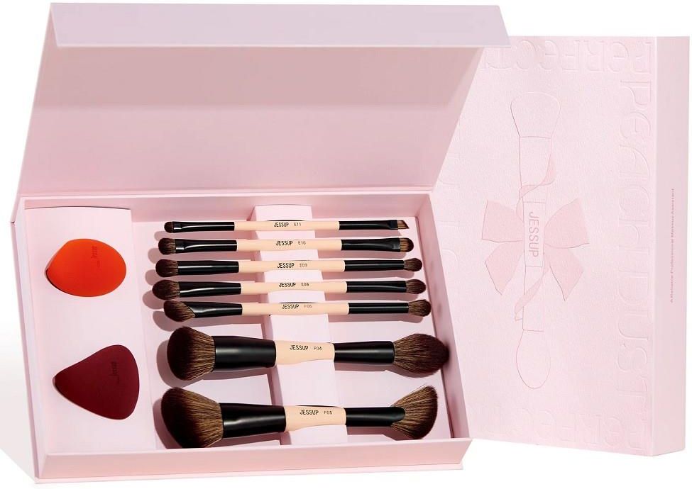 Jessup Peach Dust Perfection Beauty Kit Zestaw Dwustronnych Pędzli Do Makijażu 7Szt. + Gąbeczki Do Makijażu 2Szt. T506 Reszel