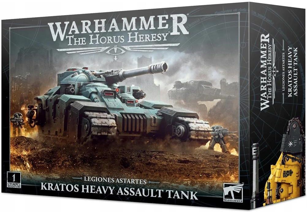 Ciężki czołg szturmowy Kratos oparty jest na starożytnym terranskim wzorze z czasów zjednoczenia Starej Ziemi, przeprojektowanym po traktacie Imperatora z Władcami Marsa, aby służył jako grot Wielkiej Krucjaty, łamacz linii i młot wroga. Ten miażdżący czołg bojowy jest prawie niewrażliwy na ogień wroga, a jego stały, nieubłagany postęp stanowi niezłomny rdzeń każdego ataku Legionów Astartes, wymuszonego zaporą przytłaczającej siły ognia. Ten wieloczęściowy plastikowy zestaw składa się z jednego ciężkiego czołgu szturmowego Kratos, niemal nieprzeniknionej machiny wojennej, najeżonej ciężkim uzbrojeniem. Ten imponujący pojazd można zbudować z jedną z trzech potężnych broni wieżowych – wszechstronnym działem bojowym Kratos, niszczycielską bronią palną Melta lub palącą kardanlą. Posiada również współosiowe działko automatyczne, parę dział zamontowanych na kadłubie – działka automatyczne, ciężkie boltery, lascannony lub kalibry volkitowe – oraz oddzielną parę broni sponson – ciężkie boltery, ciężkie płomienie, lascannony lub culveriny volkitowe. Zestaw zawiera również elementy umożliwiające ulepszenie ciężkiego czołgu szturmowego Kratos o broń montowaną na czopach – wyrzutnię spustoszenia, ciężki bolter, ciężki miotacz ognia, multi-meltę lub broń kombinowaną w pięciu konfiguracjach (bolter, flamer, melta, plazma, lub Volkite) – a także reflektor, lemiesz spycharki, pocisk typu hunter-killer oraz szereg opcji kosmetycznych, takich jak haki holownicze i wybór strzelca, obserwatora lub zamkniętego włazu Space Marine. Ten zestaw składa się z 233 plastikowych elementów i jest dostarczany z arkuszem przenoszenia pojazdów Legiones Astartes zawierającym 44 opcjonalne oznaczenia i ikony dla Legionów Synów Horusa i Pięści Imperialnych. Ta miniatura jest dostarczana niepomalowana i wymaga montażu – zalecamy użycie kleju Citadel Plastic Glue i farb Citadel.