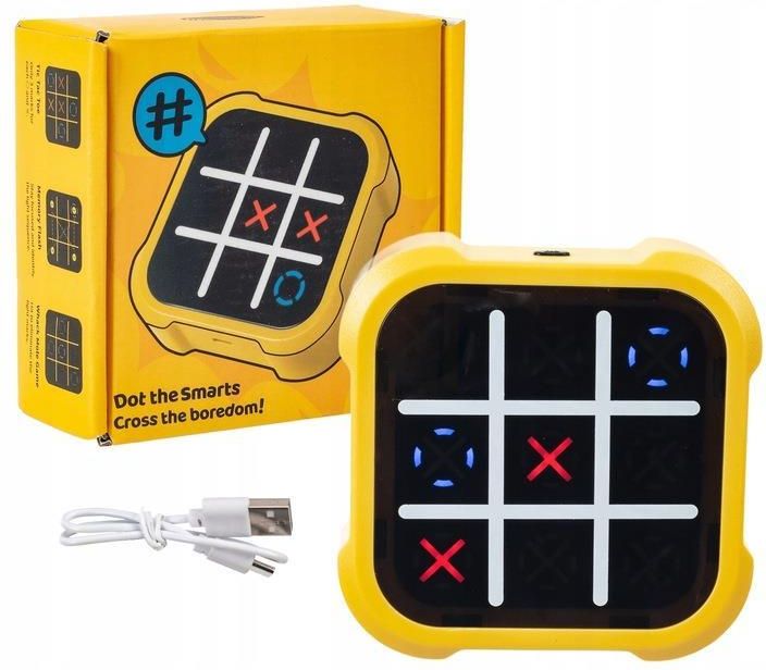 Gra Kółko i Krzyżyk Gra Elektroniczna 4w1 Różne Rozgrywki Ładowanie USB CO WYRÓŻNIA NASZ PRODUKT **Wszechstronny rozwój dziecka**: Cztery różne tryby gry rozwijające logiczne myślenie, pamięć, refleks i koncentrację w jednym urządzeniu. **Ekologiczność i bezpieczeństwo**: Ładowanie USB-C eliminuje potrzebę używania baterii, zapewniając bezpieczeństwo dziecka i ochronę środowiska. **Mobilność i funkcjonalność**: Kompaktowe wymiary, intuicyjna obsługa dotykowa i efekty dźwiękowe zapewniają wygodę użytkowania w każdych warunkach. **Sprawdzony producent**: Trzydziestoletnie doświadczenie NORIMPEX gwarantuje najwyższą jakość i pełną odpowiedzialność za produkt. ROZWIJA UMIEJĘTNOŚCI KOGNITYWNE I LOGICZNE MYŚLENIE! Ta innowacyjna elektroniczna gra 4 w 1 Kółko i Krzyżyk oferuje cztery różnorodne tryby rozgrywki, które kompleksowo rozwijają kluczowe umiejętności dziecka. Od pojedynków z komputerem, przez grę w duecie, po ćwiczenia pamięci i refleksu - każdy tryb został zaprojektowany tak, aby stymulować różne obszary rozwoju intelektualnego, koncentracji i spostrzegawczości. NOWOCZESNA TECHNOLOGIA Z EKOLOGICZNYM PODEJŚCIEM! Wyposażona w ładowanie USB-C, ta zabawka reprezentuje przyszłość bezpiecznej i ekologicznej rozrywki. Brak konieczności używania jednorazowych baterii oznacza nie tylko oszczędności i wygodę, ale przede wszystkim większe bezpieczeństwo dla dziecka i troskę o środowisko naturalne. Wbudowany akumulator zapewnia długą i stabilną zabawę bez niepożądanych przerw. INTUICYJNA OBSŁUGA I MOBILNOŚĆ BEZ KOMPROMISÓW! Kompaktowe wymiary 9 x 3 x 9 cm oraz minimalistyczny design czynią tę grę idealnym towarzyszem podróży. Kolorowe pola reagujące na dotyk, efekty dźwiękowe i możliwość zmiany trybu jednym przyciskiem sprawiają, że obsługa jest na tyle prosta, iż nawet młodsze dzieci mogą cieszyć się pełnią możliwości tej zaawansowanej technologicznie zabawki. GWARANCJA JAKOŚCI I BEZPIECZEŃSTWA OD SPRAWDZONEGO IMPORTERA! Produkt pochodzi od NORIMPEX - firmy z trzydekadowym doświadczeniem na polskim rynku zabawek. To gwarancja najwyższej jakości, bezpieczeństwa oraz pełnej odpowiedzialności za produkt. Każda zabawka przechodzi rygorystyczne kontrole jakości, zapewniając rodzicom spokój ducha i dzieciom bezpieczną, edukacyjną rozrywkę na najwyższym poziomie. SPECYFIKACJA Stan: Nowy Kod producenta: NO-2002136 Wiek dziecka: 3 lata + Marka: NORIMPEX Bohater / Bajka: brak Materiał: plastik Minimalna liczba graczy: 1 Maksymalna liczba graczy: 2 Certyfikaty, opinie, atesty: CE Wysokość produktu: 3 cm Szerokość produktu: 9 cm Głębokość produktu: 9 cm EAN (GTIN): 5906196021360 Informacje dot. bezpieczeństwa i zgodności produktu: Nie nadaje się dla dzieci w wieku poniżej 36 miesięcy Minimalny wiek dziecka: 3 Płeć: chłopcy, dziewczynki