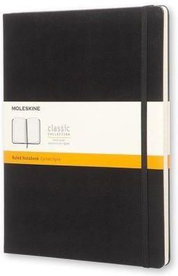Notes o wymiarach 19x25 cm (rozmiar XL) w eleganckim czarnym kolorze. Jest to absolutny klasyk wśród produktów Moleskine. Posiada dodatkową kieszonkę na luźne kartki, czy wizytówki. Zamykany na gumkę oraz wyposażony w przydatną materiałową zakładkę, w pasującym do okładki kolorze. Notes wypełniony jest bezkwasowym papierem w linie. Jest to absolutny klasyk wśród produktów Moleskine. Posiada dodatkową kieszonkę na luźne kartki, czy wizytówki. Zamykany na gumkę oraz wyposażony w przydatną materiałową zakładkę, w pasującym do okładki kolorze. Notes wypełniony jest bezkwasowym gładkim papierem. Sztywna oprawa o charakterystycznych dla Moleskine zaokrąglonych rogach minimalnie wystaje poza grzbiet kartek. Zapewnia odpowiednio stabilne podłoże do komfortowego notowania nawet w niesprzyjających warunkach. Dodatkowo twarda oprawa gwarantuje bezpieczeństwo samemu notatnikowi jak i jego zawartości. zaokrąglone rogi, zamykany na elastyczną gumkę, materiałowa zakładka, wyjątkowy, bezkwasowy papier Moleskine, kieszonka z tyłu na luźne notatki, załączona historia Moleskine.