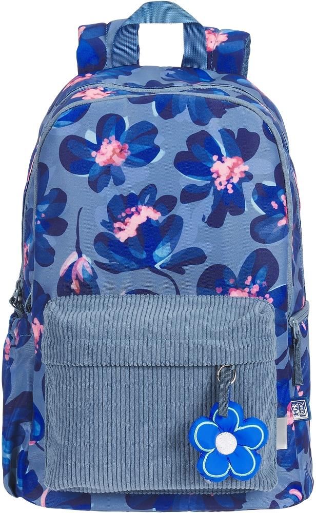 Plecak Oxford Bloom to połączenie stylu i ekologicznej świadomości. Wykonany z trwałego poliestru pochodzącego z recyklingu, jest idealnym wyborem dla osób dbających o środowisko. Jego wyjątkowy, kwiatowy wzór dodaje uroku i sprawia, że plecak wyróżnia się na tle klasycznych modeli – to doskonała propozycja zarówno do szkoły, na uczelnię, jak i na codzienne wyjścia. Plecak Oxford Bloom posiada dużą, funkcjonalną komorę główną, która pomieści książki, zeszyty i inne niezbędne przedmioty. Na przodzie znajduje się stylowa kieszeń z miękkiego sztruksu, idealna na drobiazgi, które chcesz mieć zawsze pod ręką. Praktyczny, wygodny i z charakterem – Oxford Bloom to plecak, który sprosta wszystkim Twoim wymaganiom! Cechy główne Dwie pojemne komory pozwalają spakować niezbędne szkolne przybory, zeszyty i podręczniki Wewnątrz znajduje się usztywniona kieszeń na laptopa 13"- 15", która doskonale zabezpiecza sprzęt podczas transportu Usztywnione, modelowane plecy zapewniają wygodę i ergonomię noszenia plecaka Plecak jest lekki i wytrzymały, dzięki czemu wygodny, a jednocześnie odporny na długie użytkowanie Wodoodporny materiał doskonale chroni zawartość plecaka przed deszczem i wilgocią Do produkcji plecaka użyto poliestru z recyklingu, dzięki czemu produkt jest przyjazny dla środowiska Cechy dodatkowe Elegancki, kwiatowy design został zaprojektowany w zgodzie z najnowszymi trendami i nadaje plecakowi niepowtarzalnego wyrazu Wewnętrzny organizer zamykany na suwak pomaga utrzymać doskonały porządek w plecaku Z boku plecaka umieszczono kieszeń na bidon, klucze lub małą elektronikę Z przodu kieszeń ze sztruksowego materiału Do plecaka dołączono brelok w kształcie kwiatka 2 lata gwarancji od daty zakupu Wymiary: 43 x 29 x 15 cm Pojemność: 26 l Kolor jeansowo-niebieski